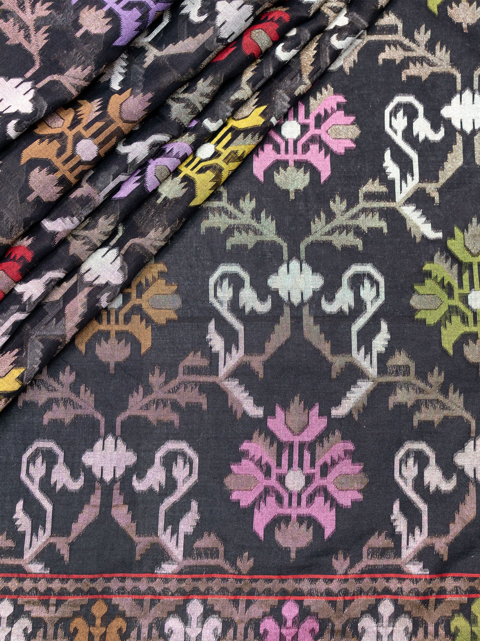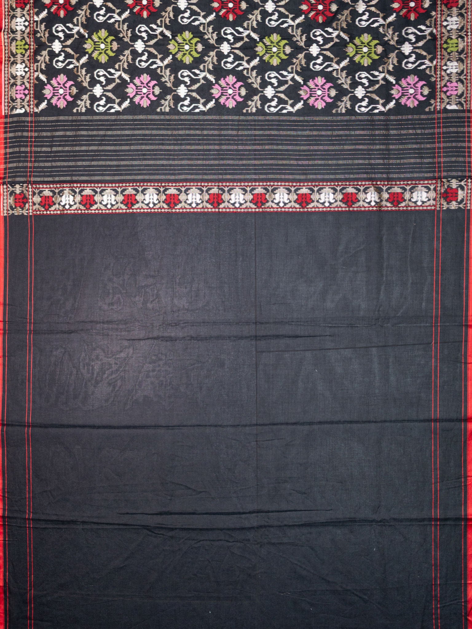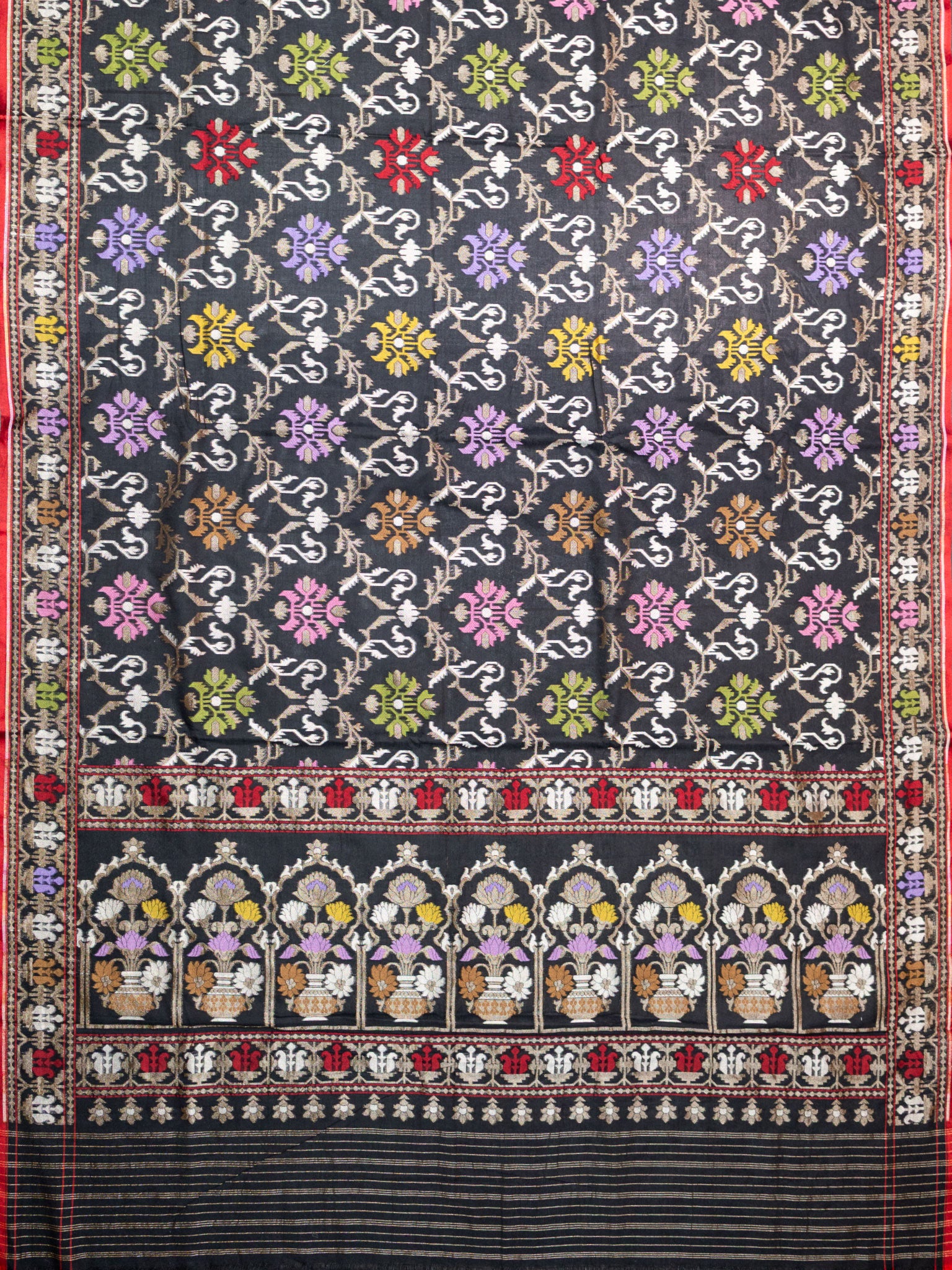 Elegant Black Banarasi Jaal saree with intricate Gold Zari and Self border. Unstitched 5.5 meters of premium silk, perfect for weddings, festive occasions, and traditional celebrations.