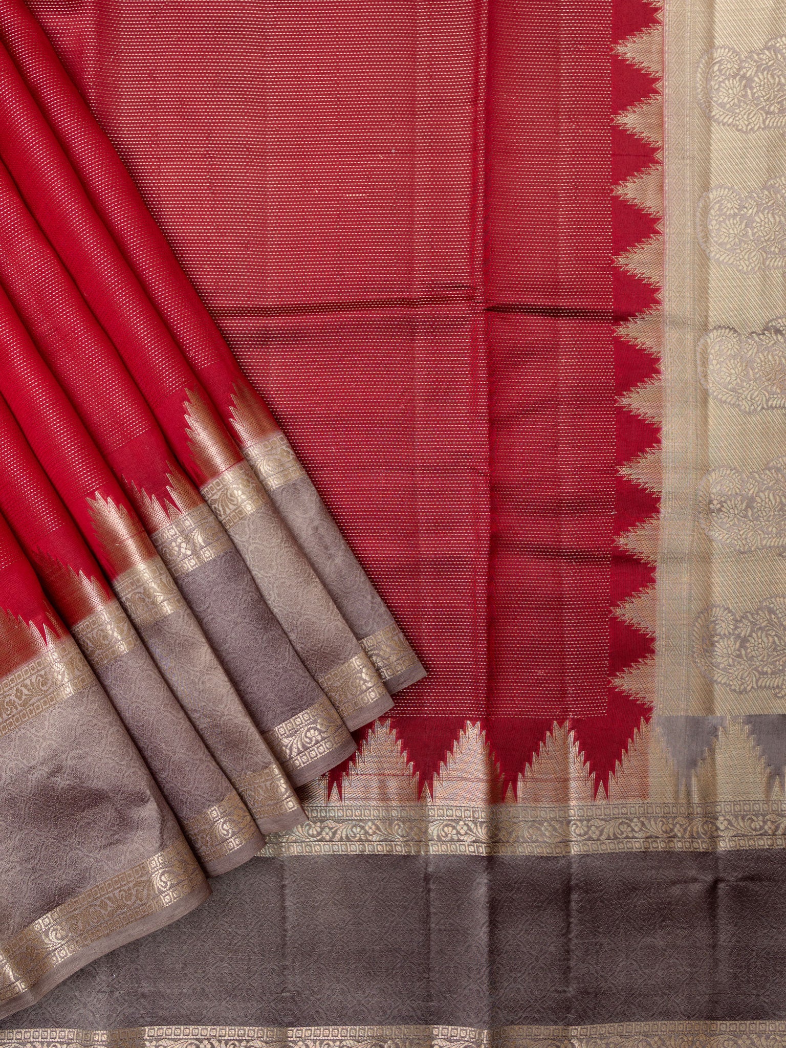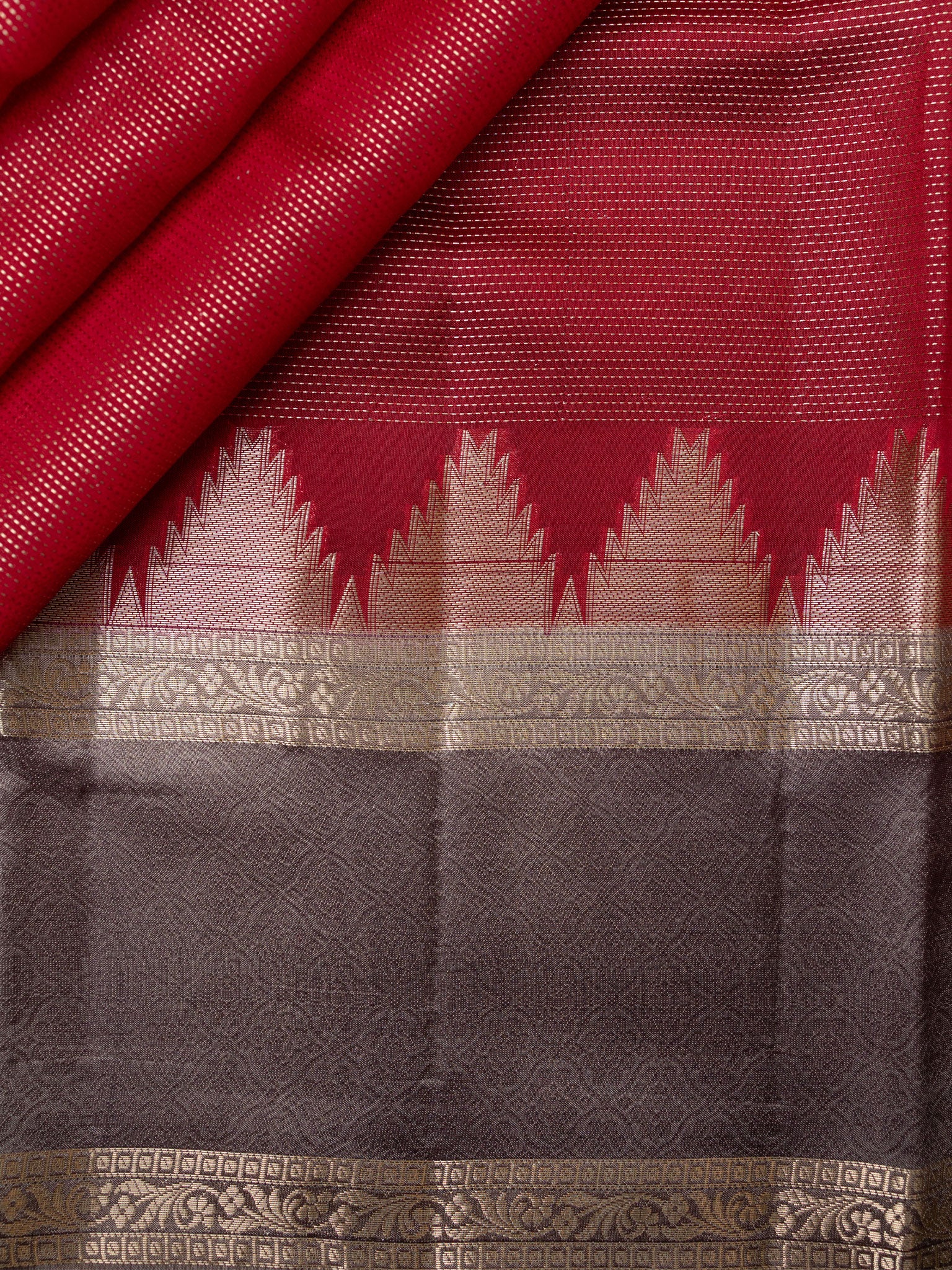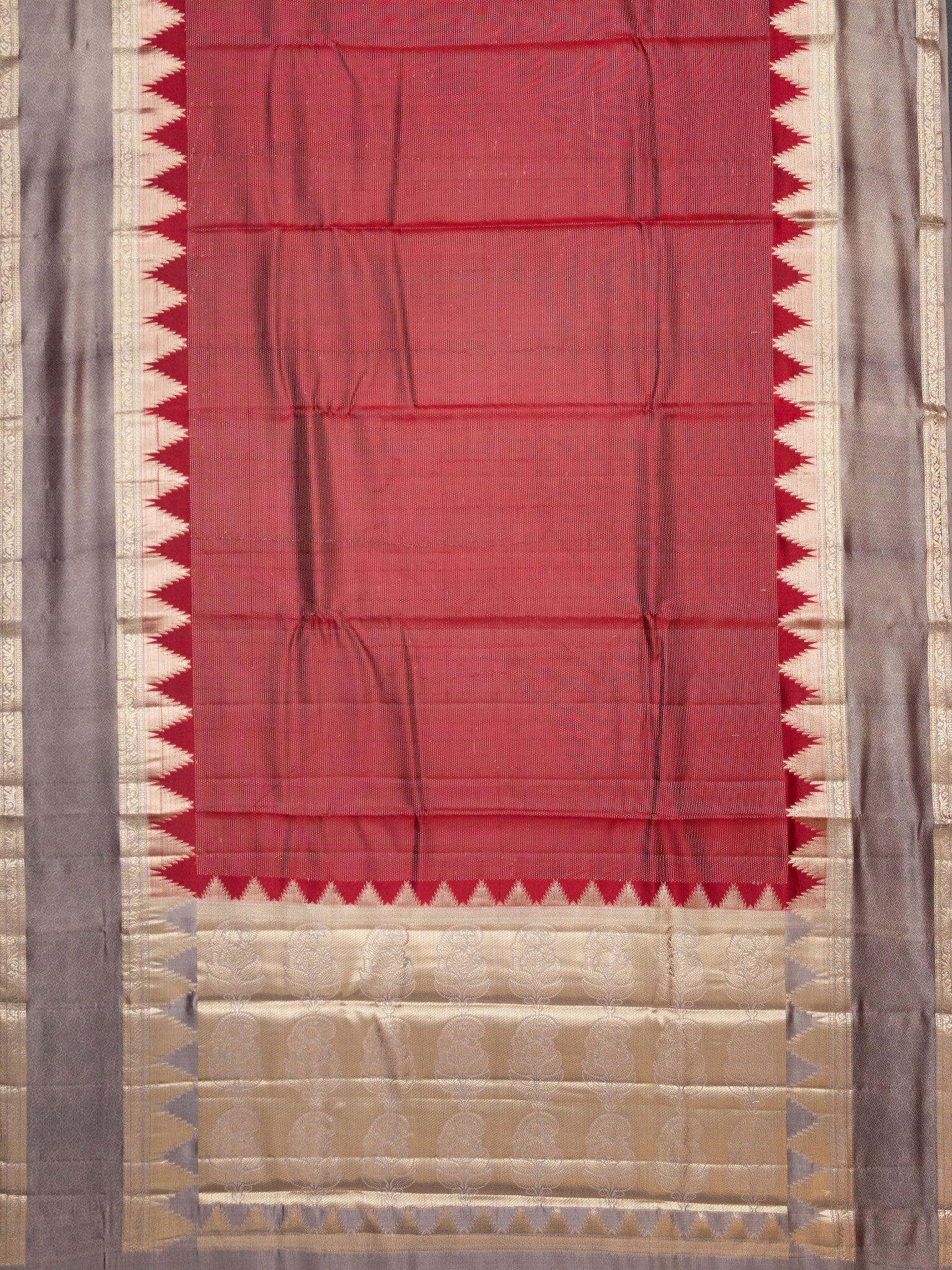 Enhance Your Wardrobe With This Brick Red Chiniya Silk Saree Featuring Elegant Horizontal Ash Gold Zari Lines And A Contrast Border. Ideal For Weddings And Festive Wear