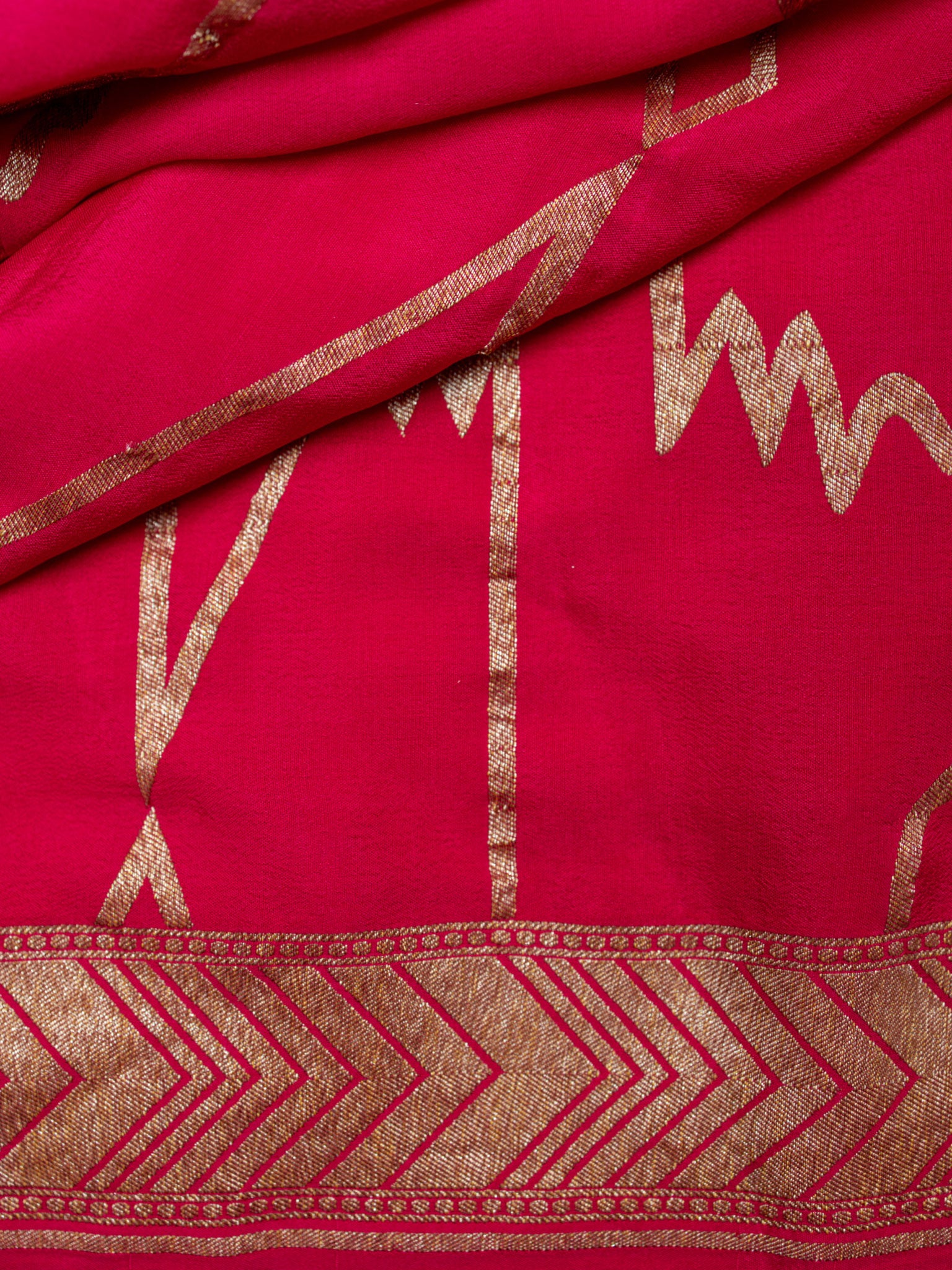Experience the perfect blend of tradition and modern style with this Fancy Crepe Saree in vibrant rani pink. Featuring an elegant all-over geometric weave and a beautifully crafted border, this saree offers a graceful drape and comfortable fit. Ideal for festive events and special occasions, it promises to make you the center of attention with its rich texture and striking color.