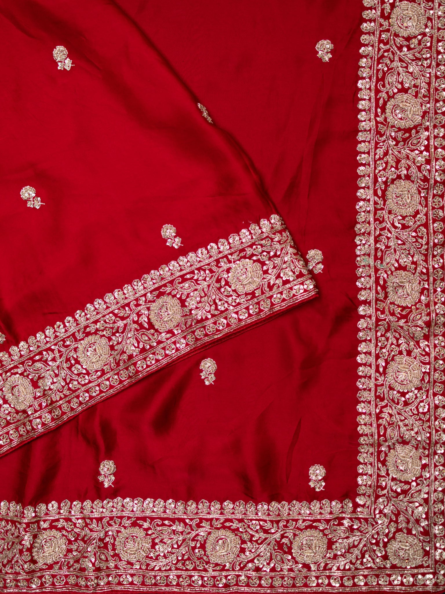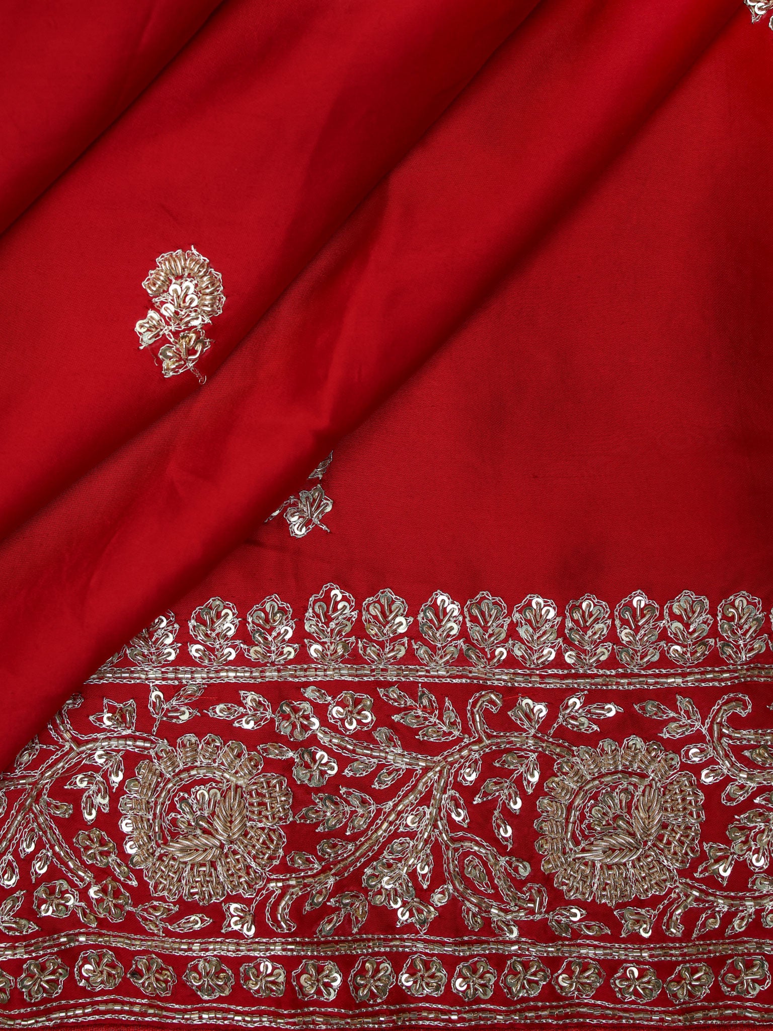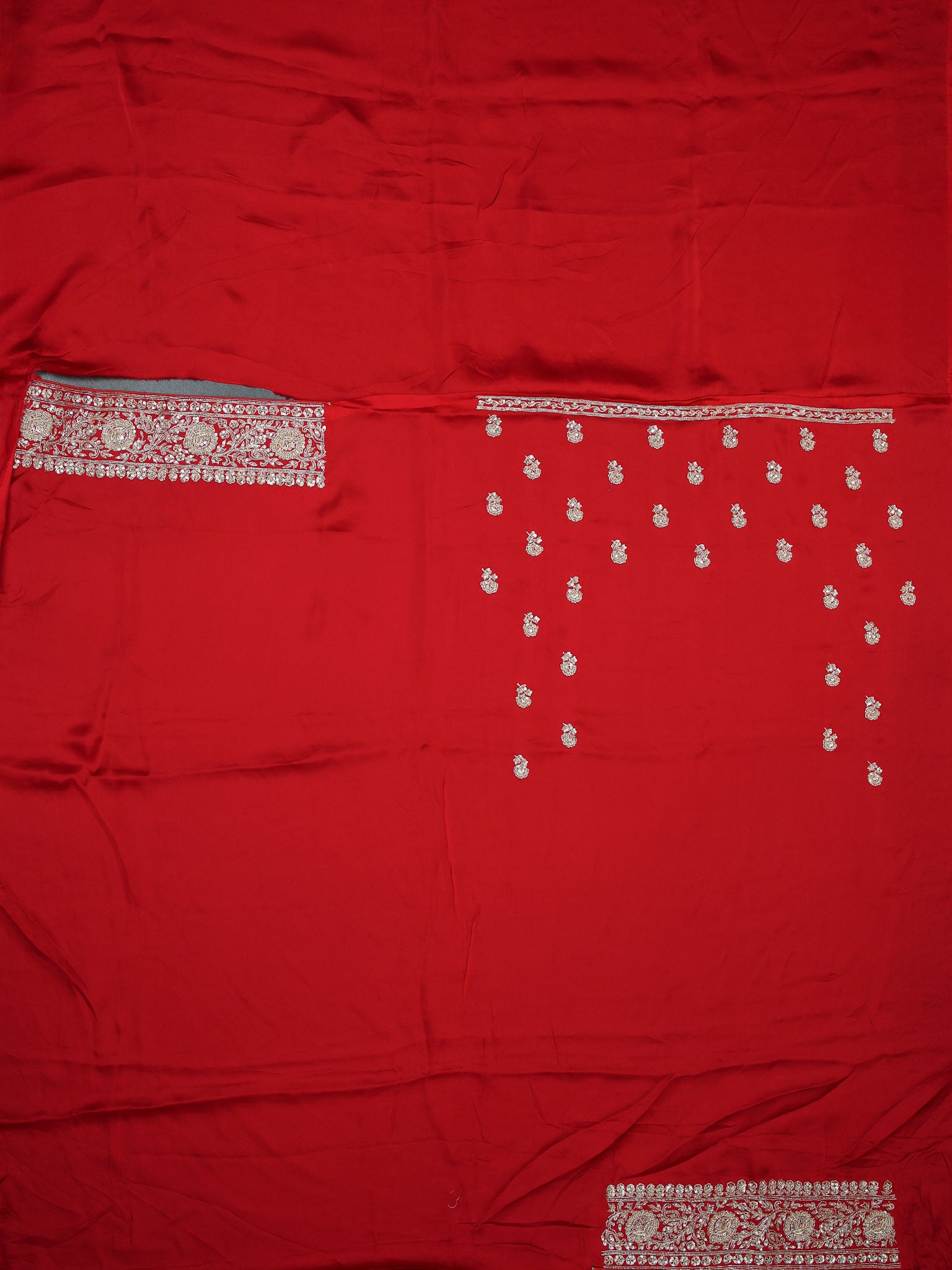 Elevate your wardrobe with this exquisite Fancy Crepe piece featuring intricate handwork and elegant Butta (Zardosi) embroidery in a striking blood red hue. Perfect for special occasions, its rich texture and detailed craftsmanship ensure you stand out with timeless sophistication and grace.