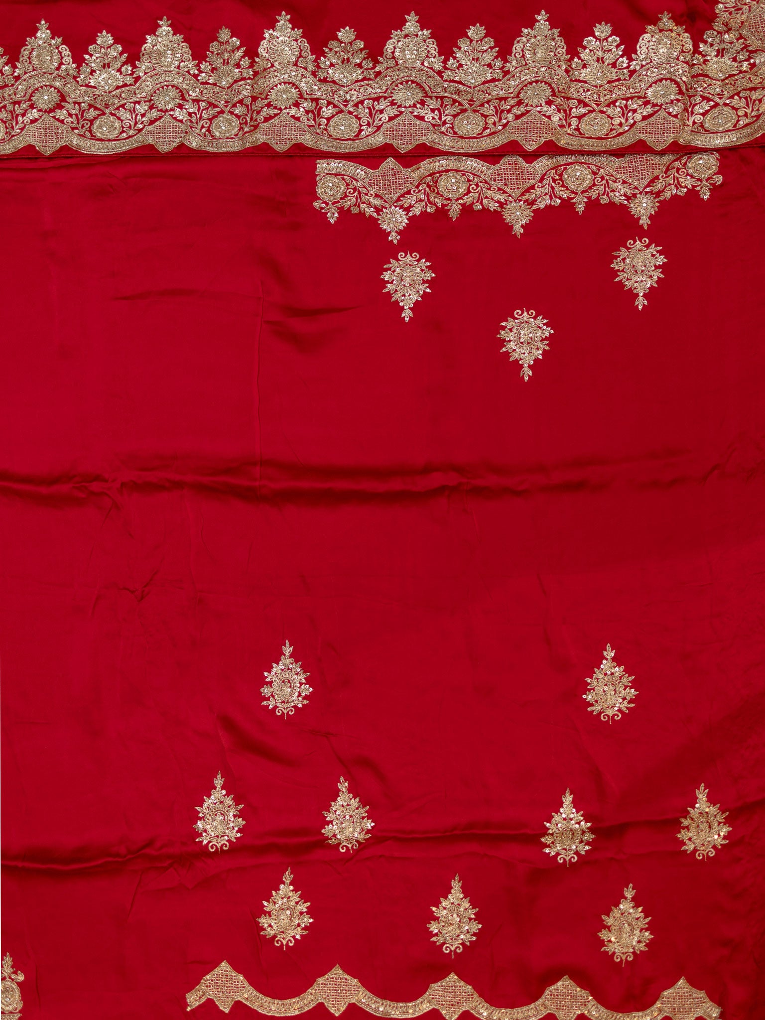 Elevate your wardrobe with this exquisite Fancy Crepe Hand Work + Butta (Zardosi) in vibrant red. Crafted with intricate hand embroidery and delicate Zardosi butta, this piece combines traditional artistry with luxurious fabric for a stunning look. Perfect for special occasions, it offers both elegance and comfort, making you stand out effortlessly. Add a touch of timeless charm to your collection with this beautifully detailed creation.