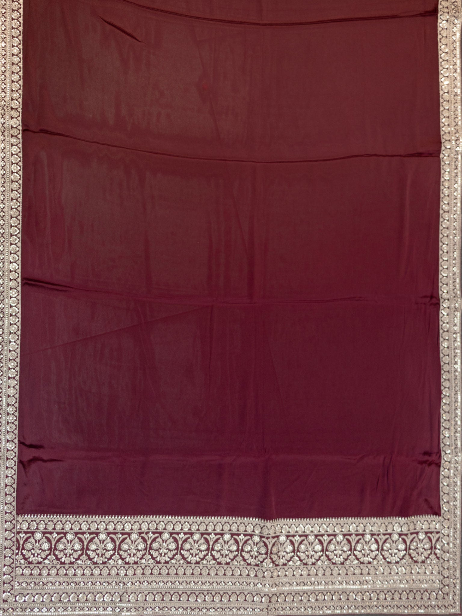 Elevate your elegance with our Fancy Crepe Plain Saree in a rich wine shade, beautifully enhanced by a delicate work lace border. This saree combines smooth crepe fabric with intricate detailing, offering a graceful drape and a refined look perfect for special occasions. Experience comfort and style in one stunning ensemble that makes a lasting impression.