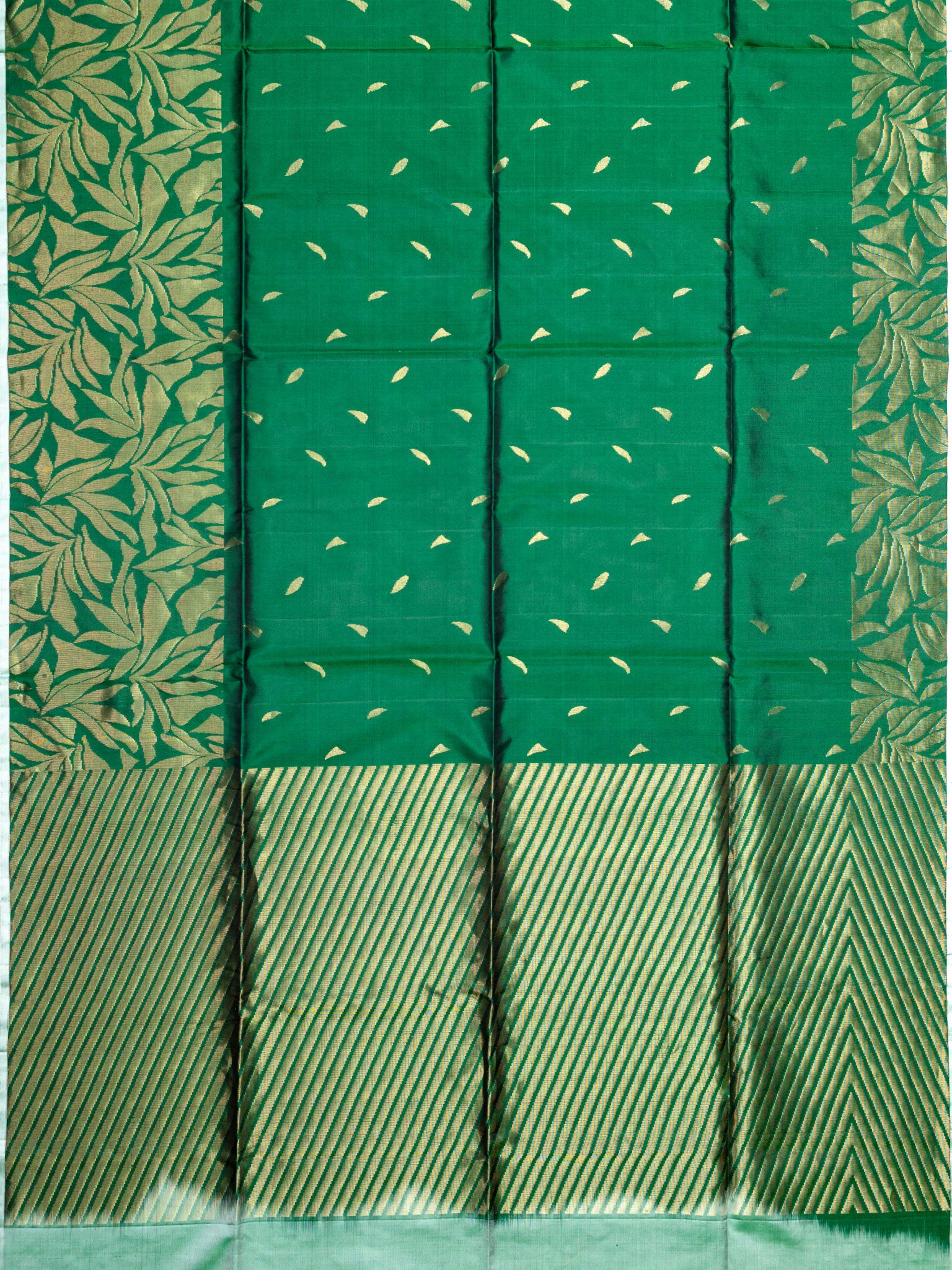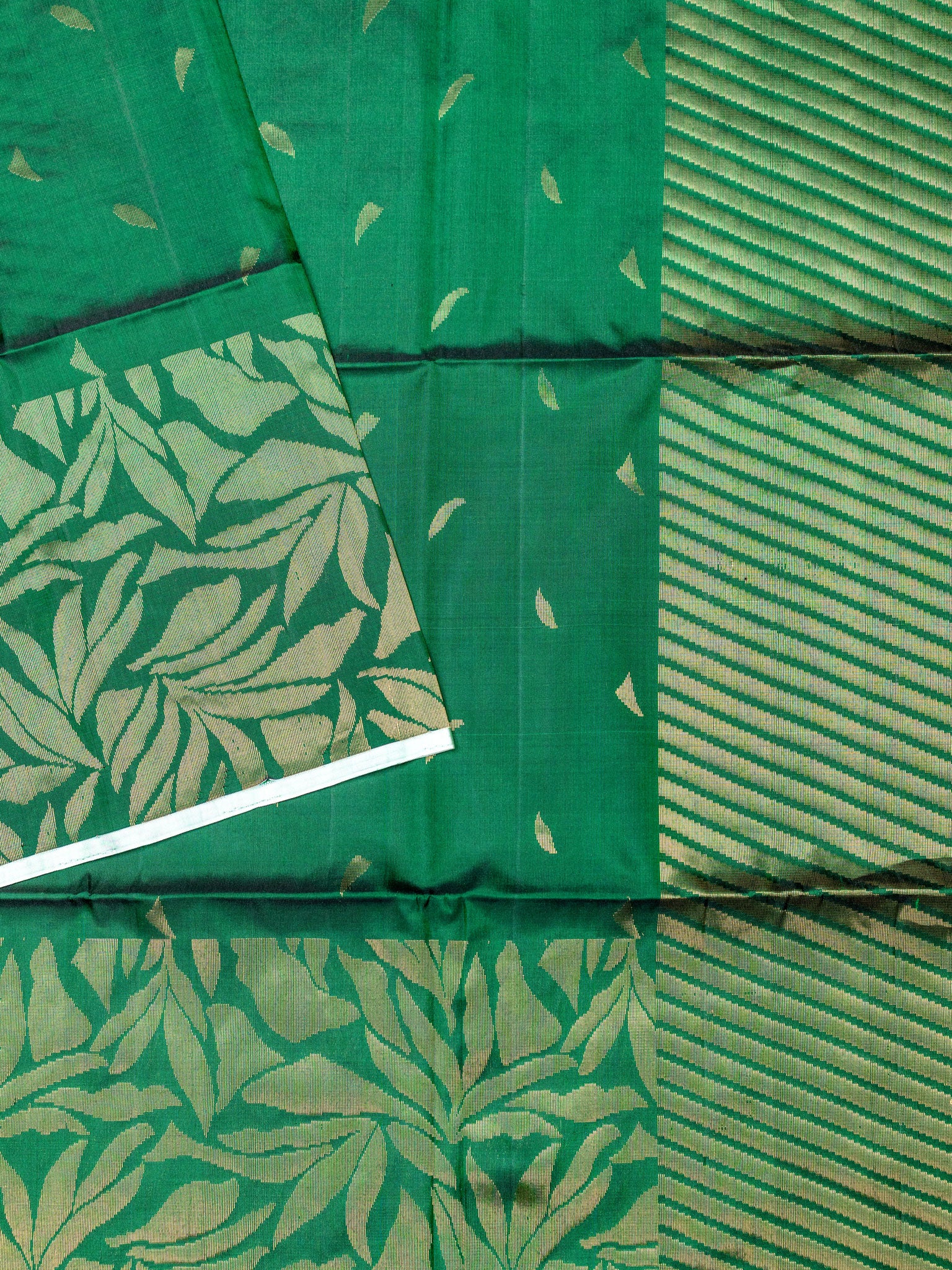 Elegant Green Tripura Pattu Soft Silk Saree with self unstitched blouse. Perfect for weddings, festive functions, and timeless traditional occasions.