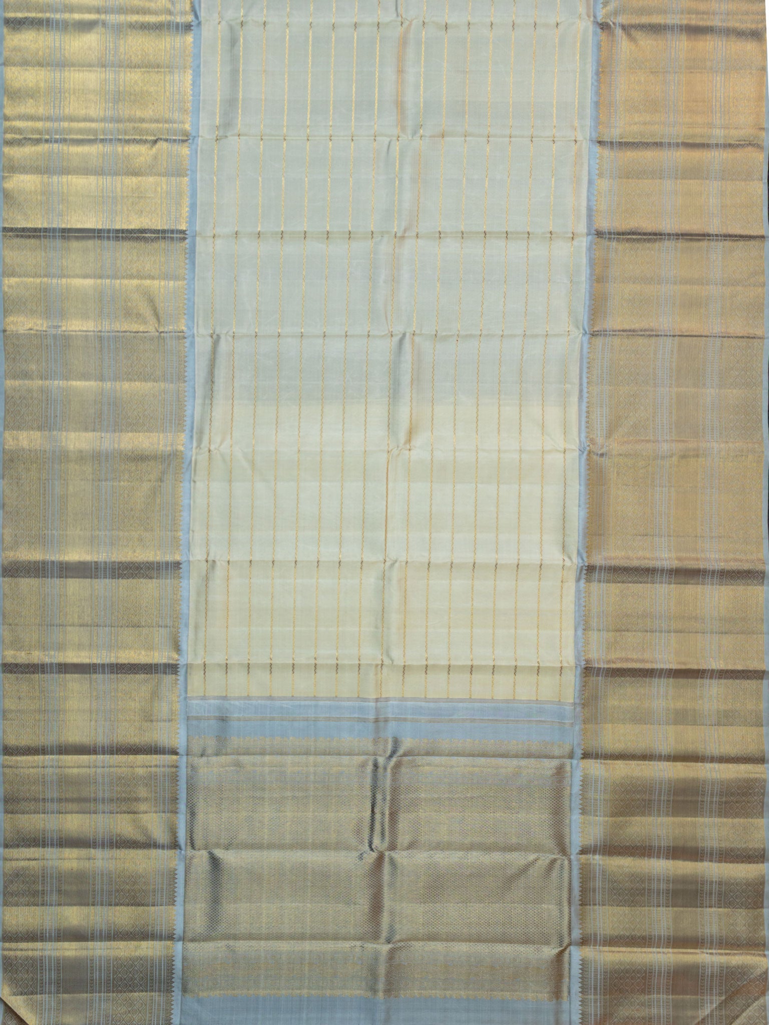 Experience timeless elegance with the Kanjeevaram Kanchi Pattu saree, featuring intricate all-over butta gold zari work and a striking contrast border. The exquisite cream and ash combination enhances its regal appeal, making it perfect for weddings and special occasions. Crafted with rich silk, this saree offers a luxurious drape and lasting comfort, ensuring you stand out with grace and tradition. Elevate your wardrobe with this classic masterpiece that blends heritage craftsmanship with contemporary style.