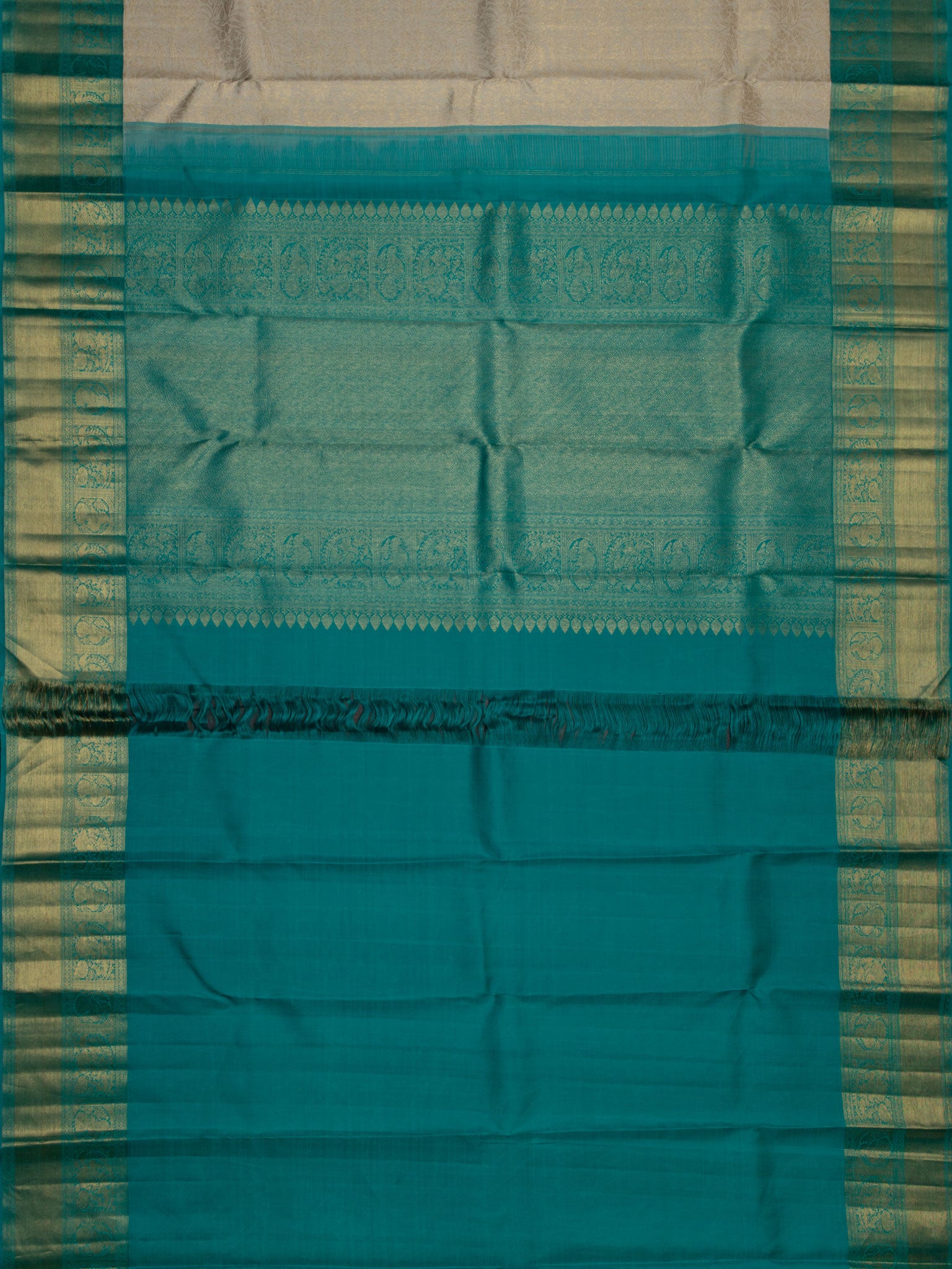 Experience timeless elegance with the Kanjeevaram Kanchi Pattu saree featuring intricate all-over butta zari work and a striking contrast border in white and ice blue. This exquisite saree blends traditional craftsmanship with a refreshing color palette, perfect for festive occasions and celebrations. Its rich silk texture ensures a graceful drape, making you stand out with every wear. Elevate your wardrobe with this classic piece that embodies sophistication and cultural heritage.