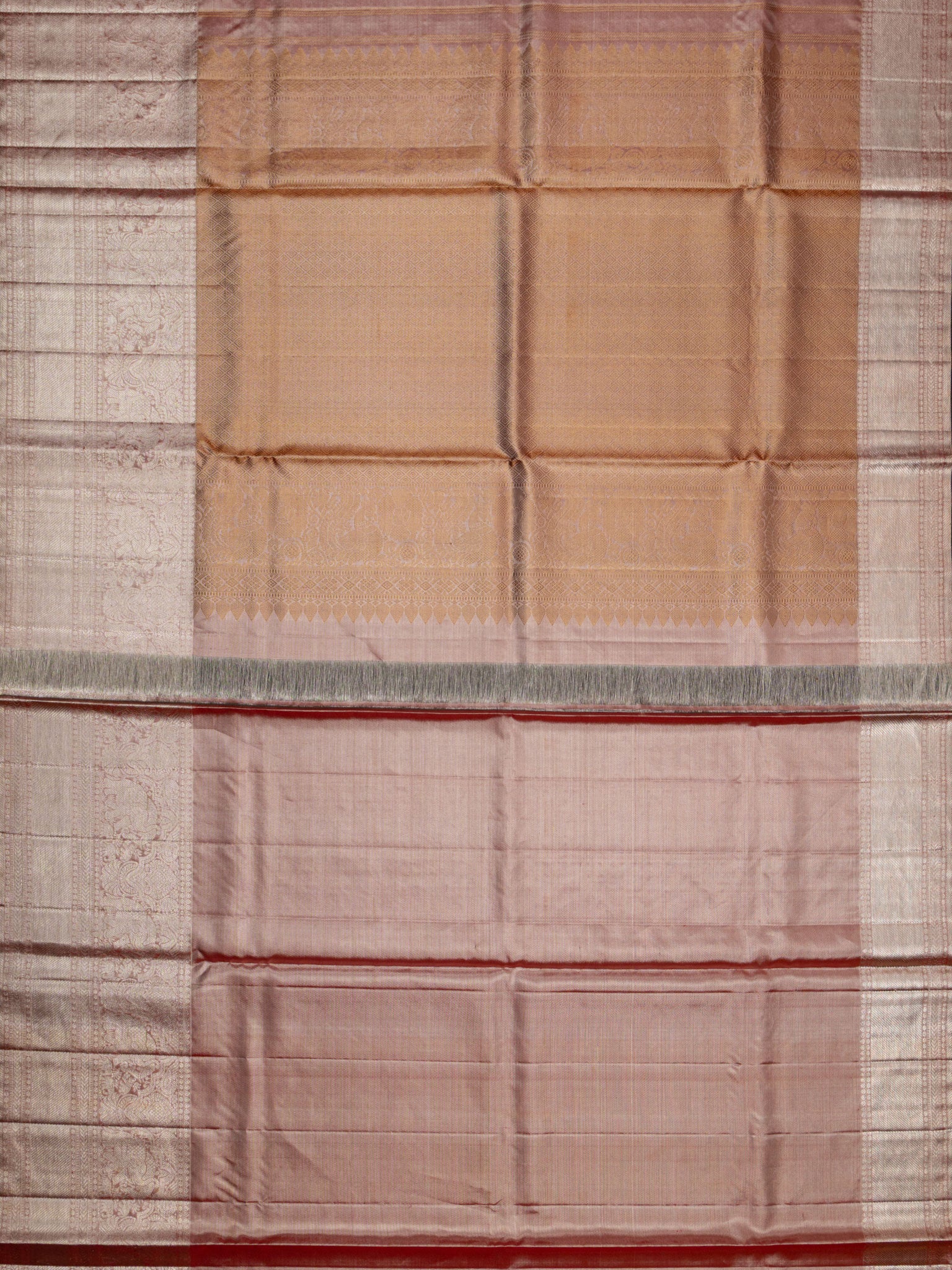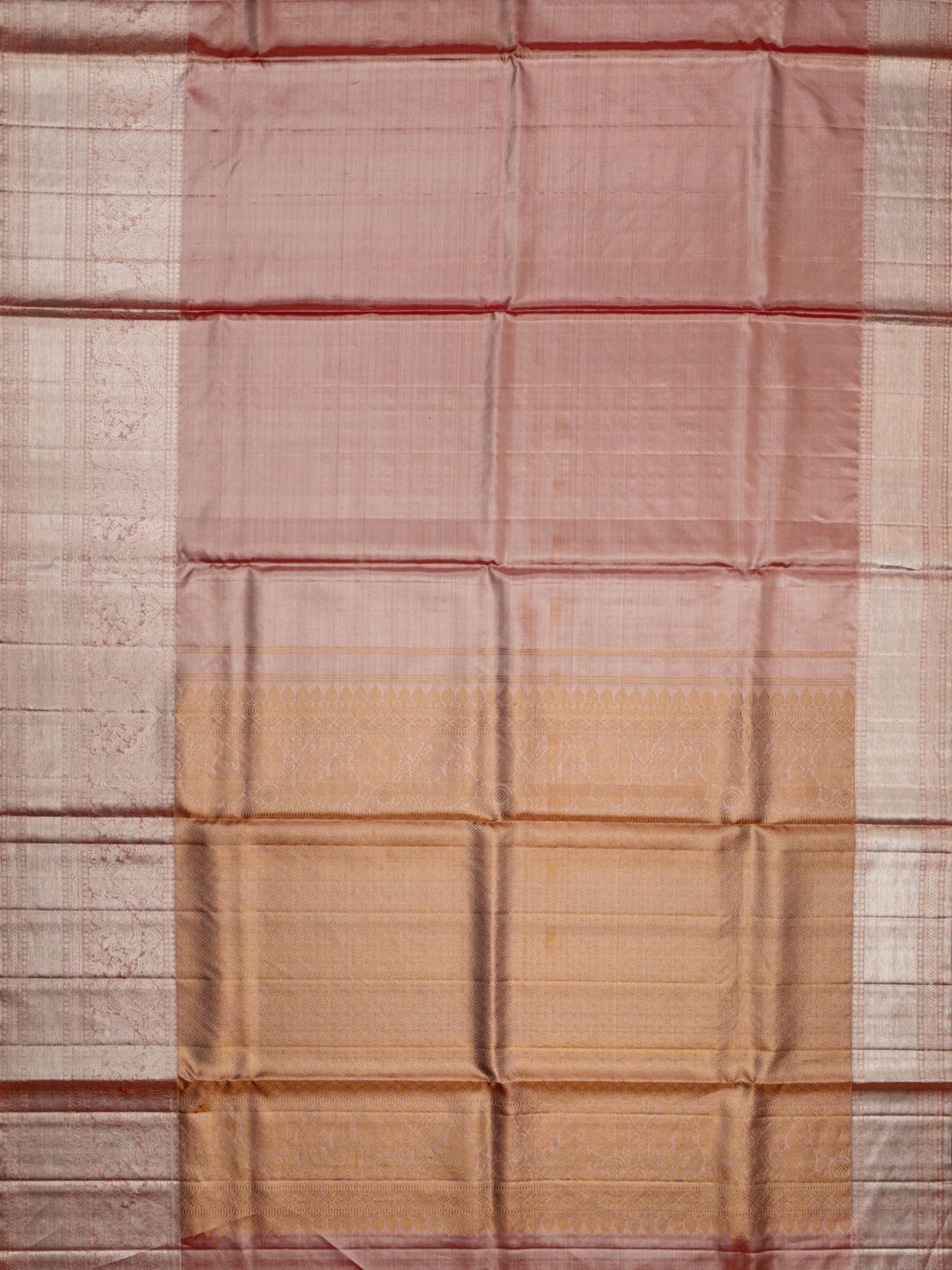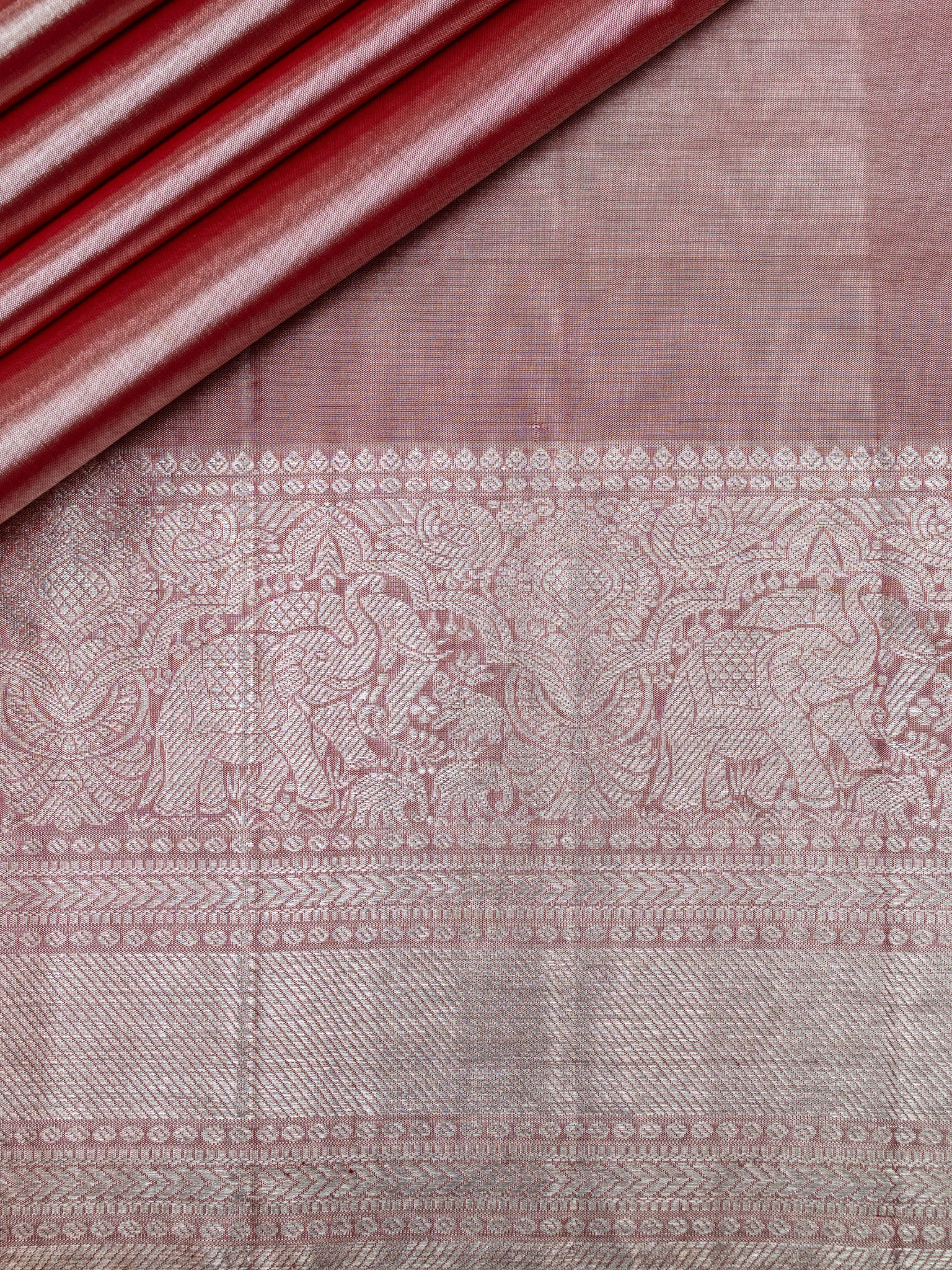 Experience timeless elegance with this Kanjeevaram Kanchi Pattu saree, featuring a matte pink base enhanced by a classic Kanchi border. The subtle silver zari work adds a refined shimmer, perfect for special occasions. Its matte finish offers a sophisticated look that complements any celebration, making it a must-have addition to your traditional wardrobe.