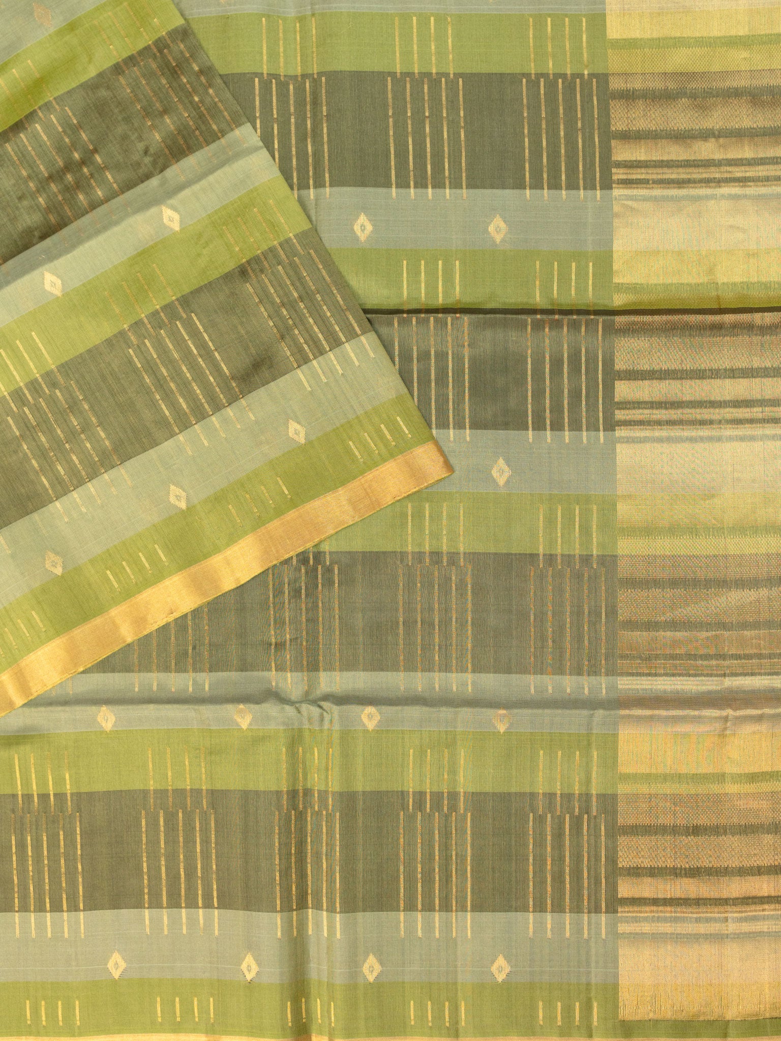 Elegant Mehendi Green Tripura Pattu Soft Silk Saree paired with self unstiched blouse. Perfect for weddings, festive occasions, and cultural celebrations.
