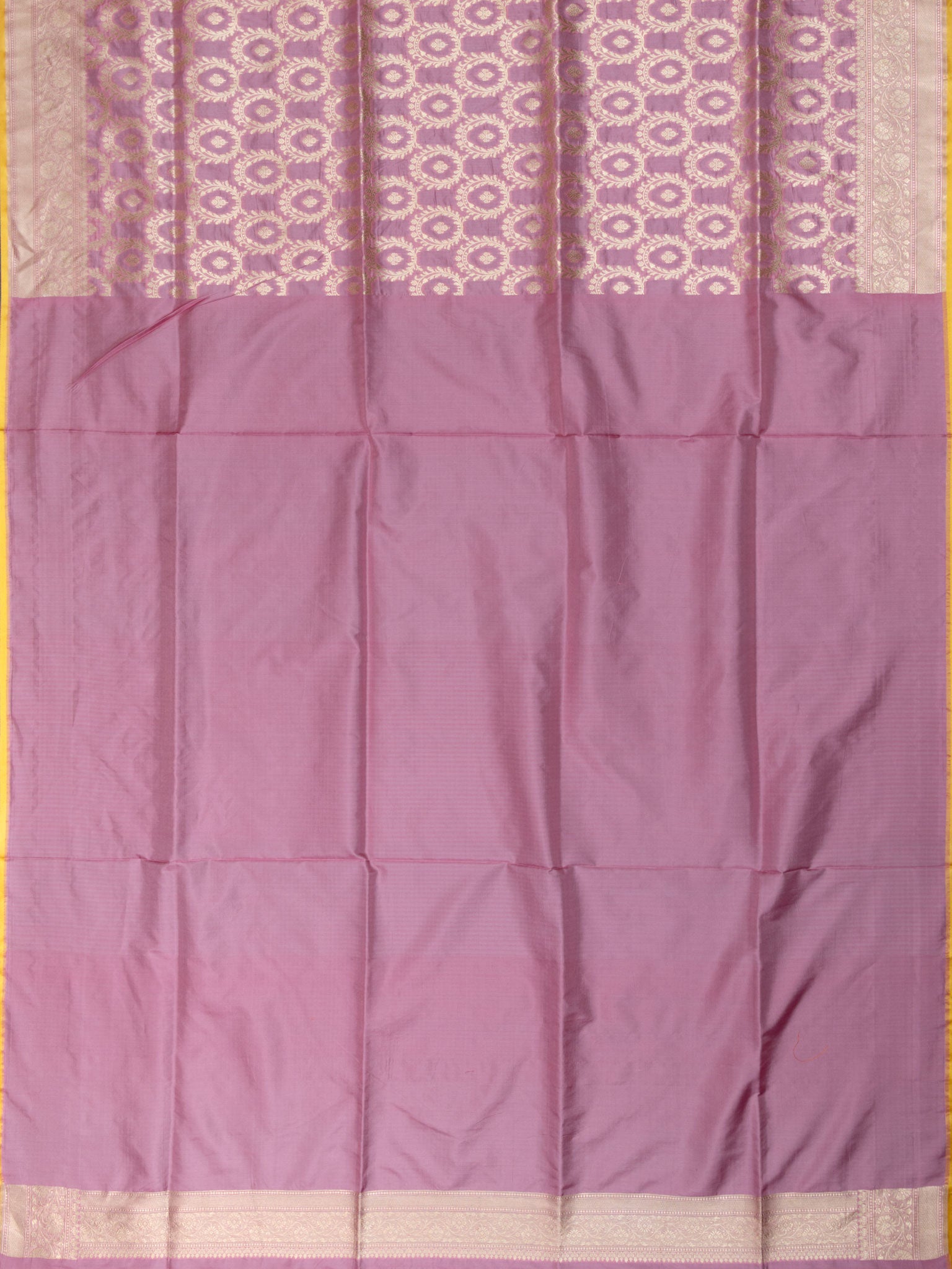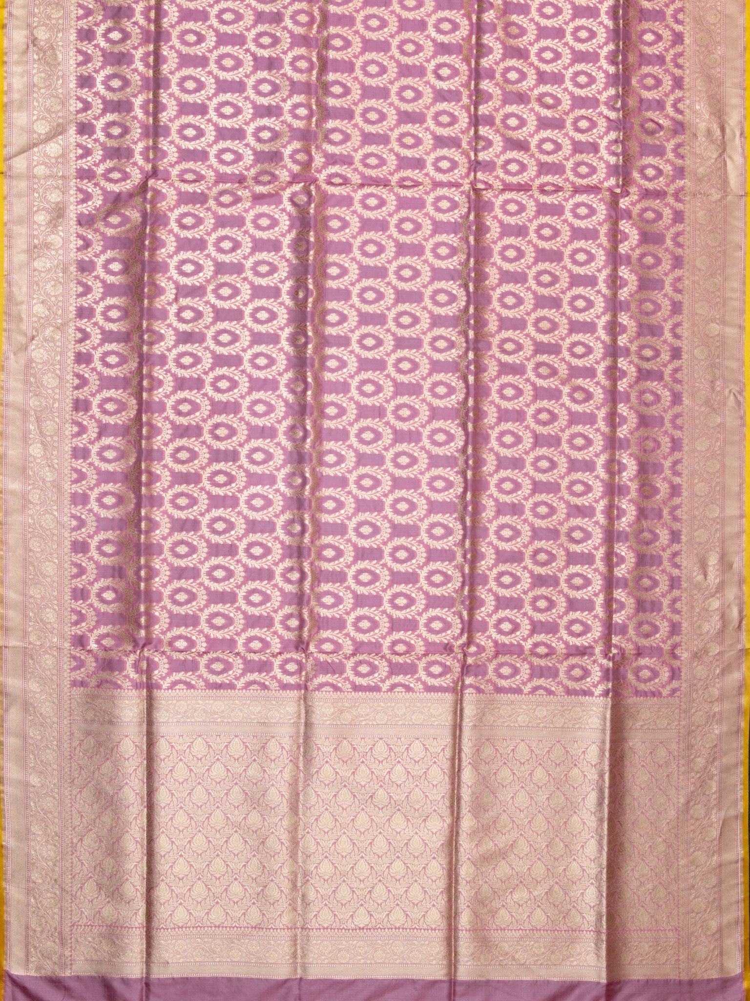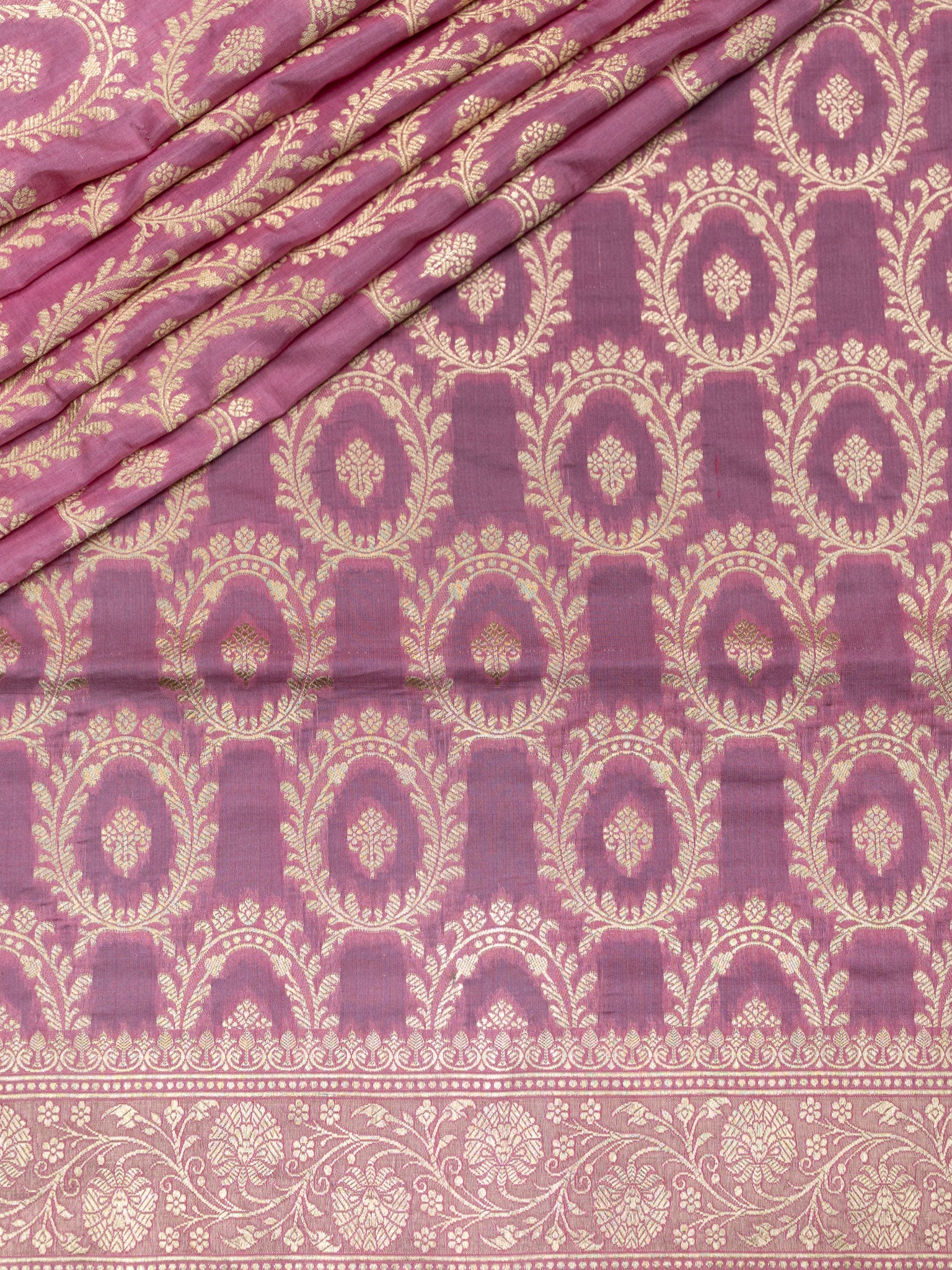Onion Pink Banarasi Jaal saree with Gold Zari and Self border. Unstitched, premium silk ideal for festive occasions, weddings, and traditional celebrations.