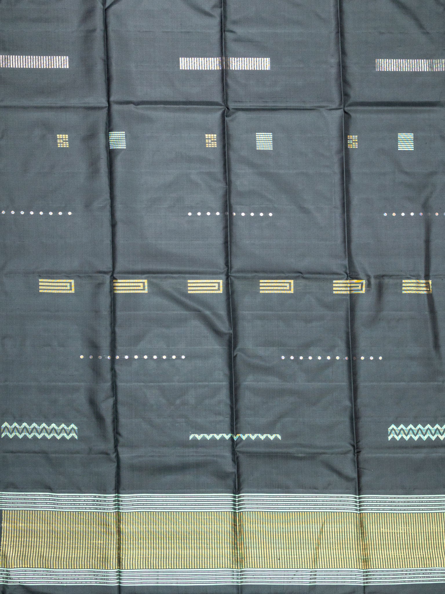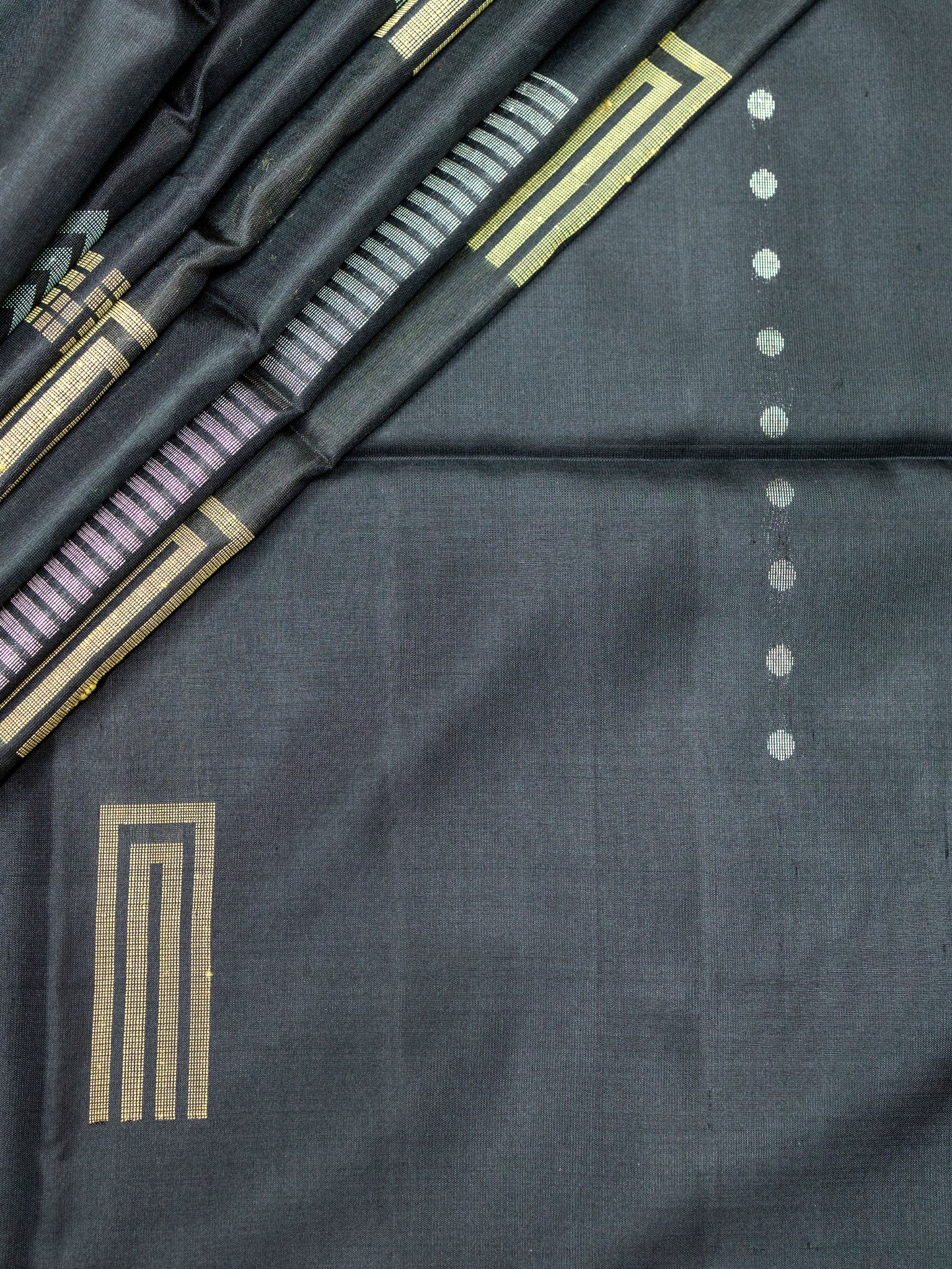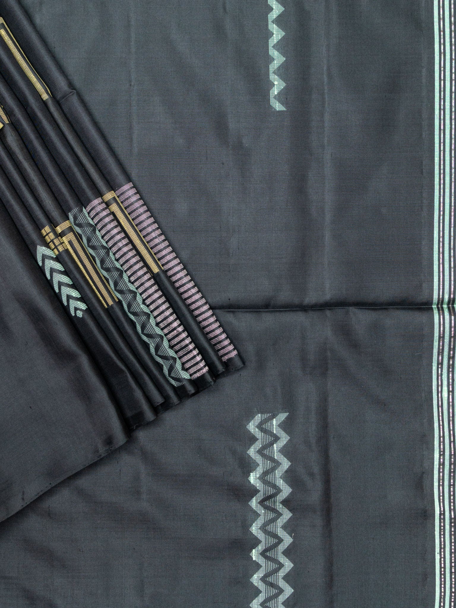Elegant Black Soft Silk Tripura Pattu saree with Self border. Unstitched, premium quality silk perfect for festive occasions, traditional events, and celebrations.