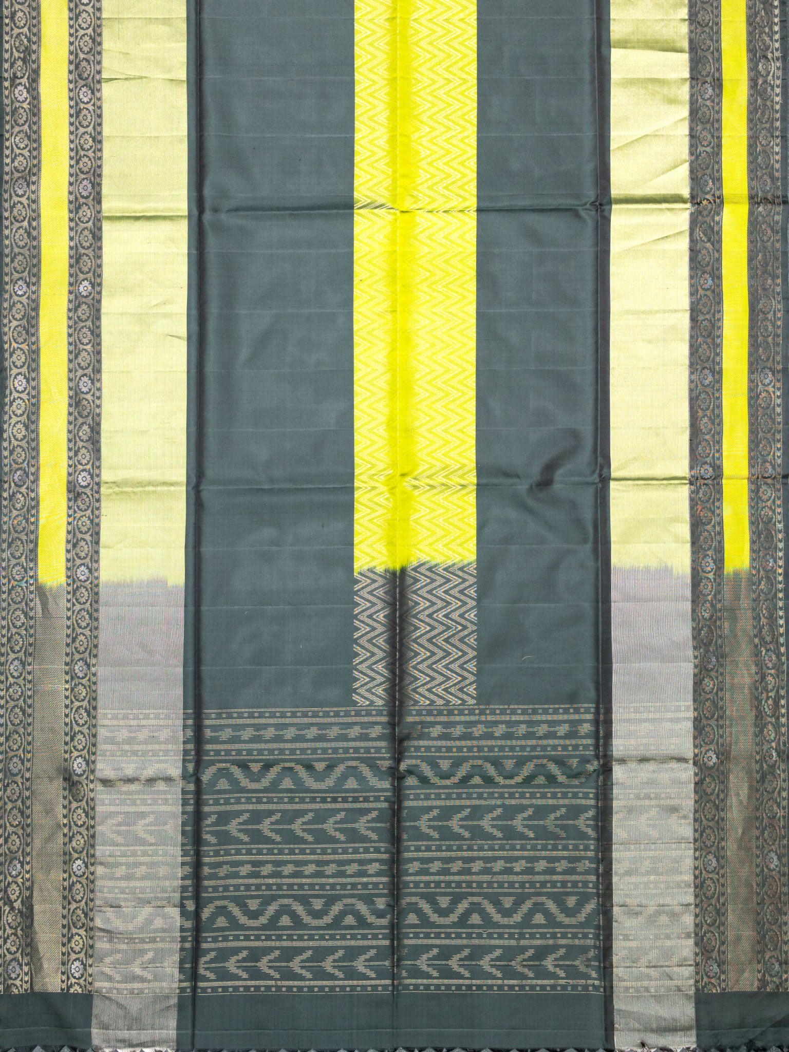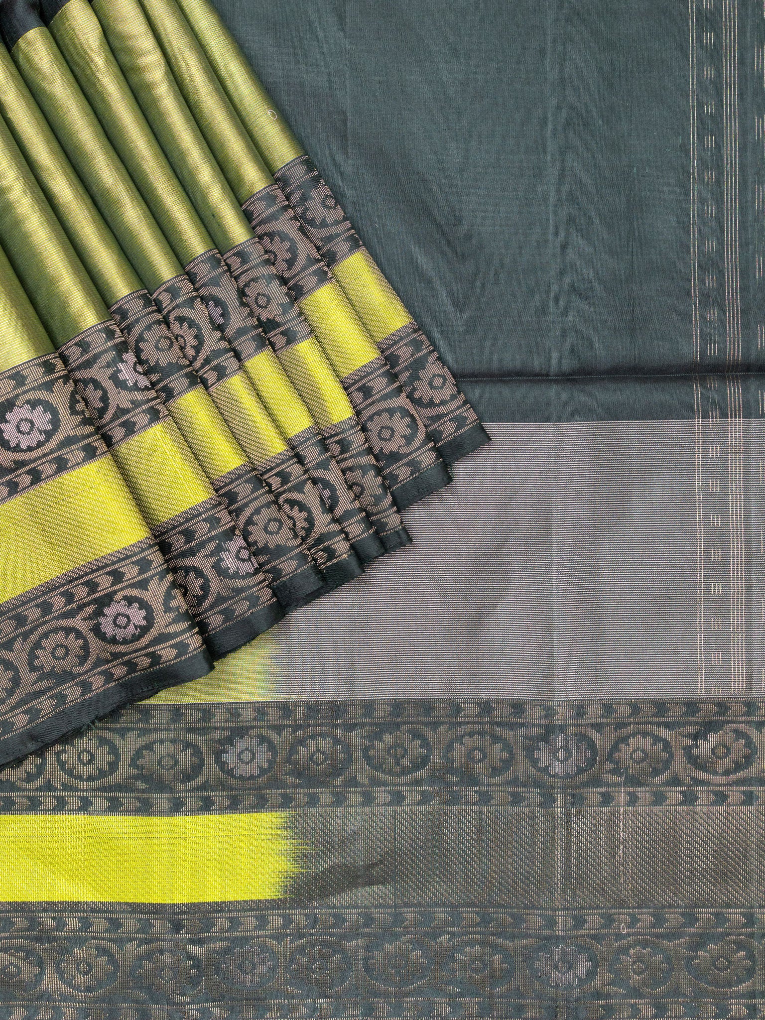 Dark Green Soft Silk Tripura Pattu saree with Self border. Unstitched, premium quality silk suitable for festive occasions, traditional events, and celebrations.