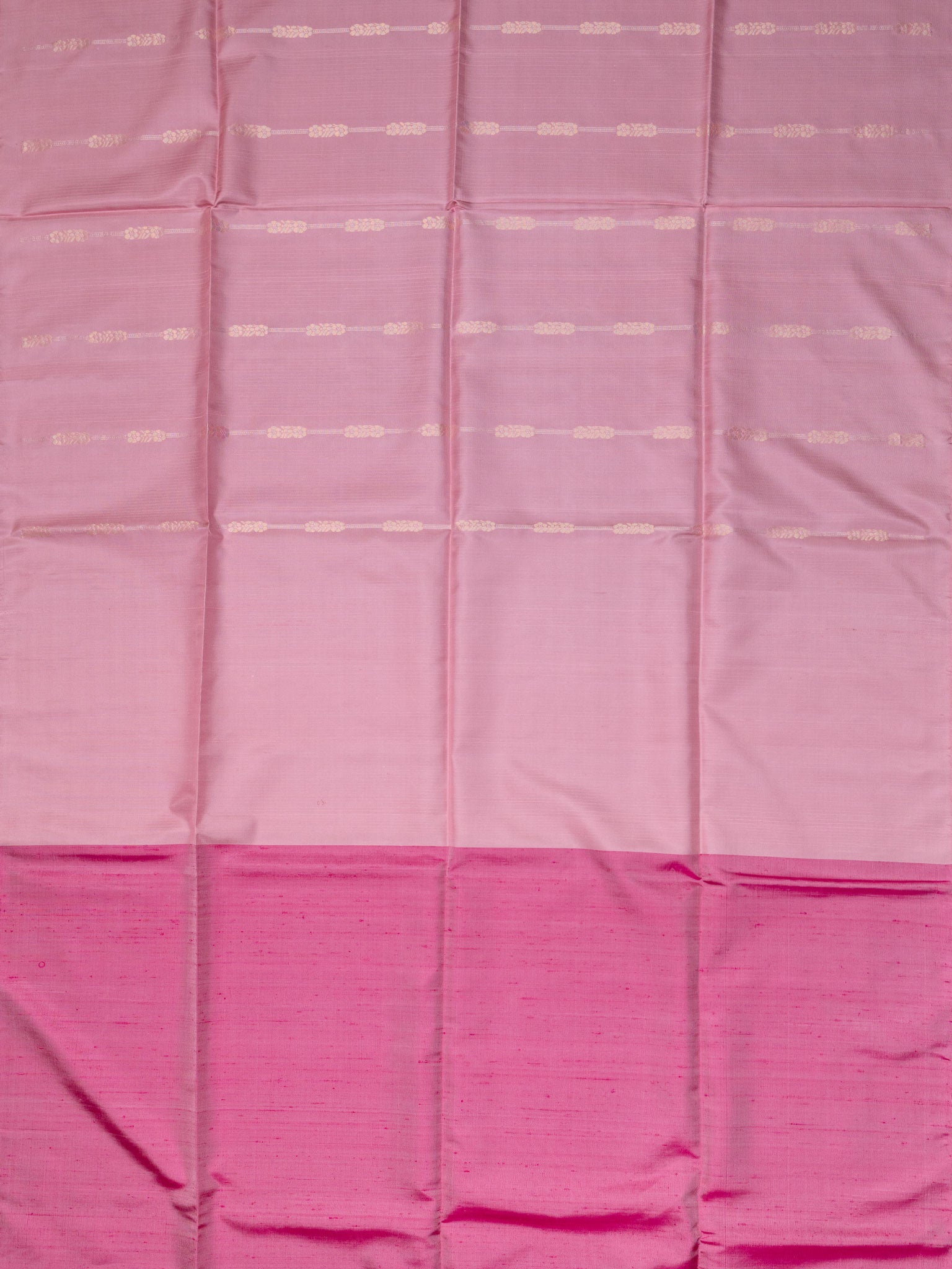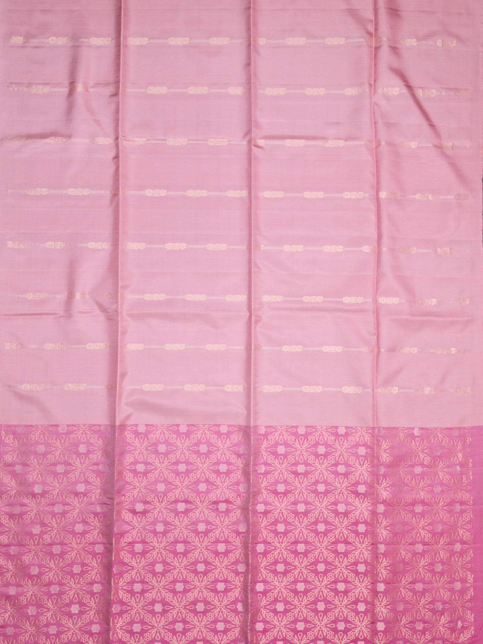 Light Pink Soft Silk Tripura Pattu saree with Self border and Pink accents. Unstitched, premium quality silk suitable for festive and traditional occasions.
