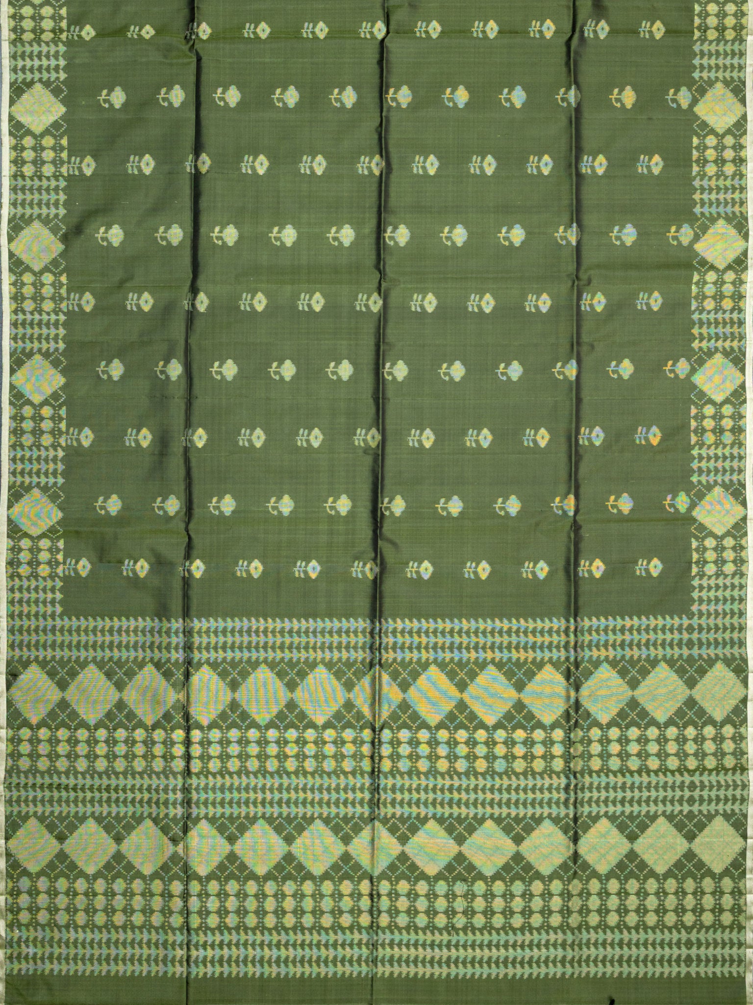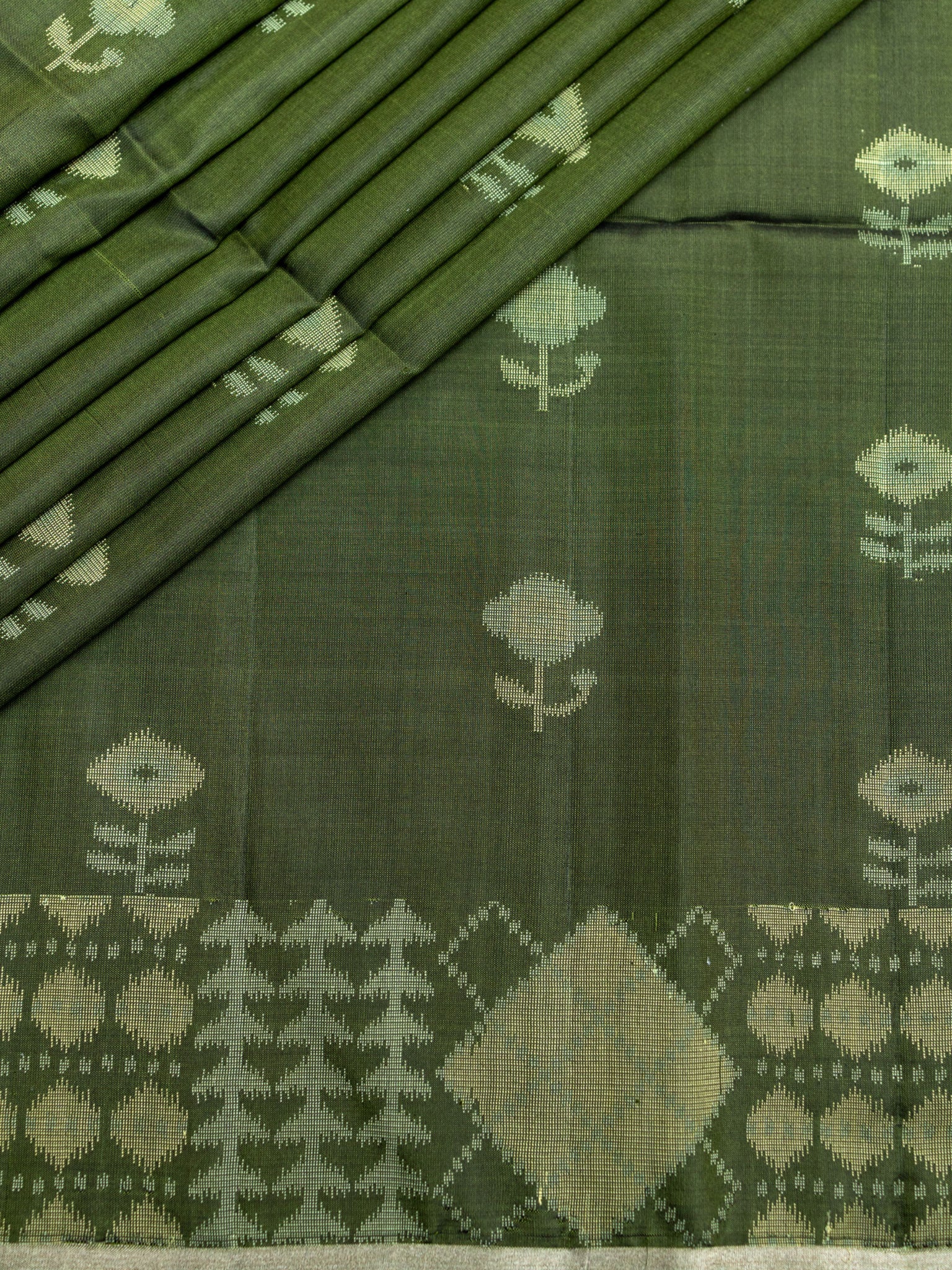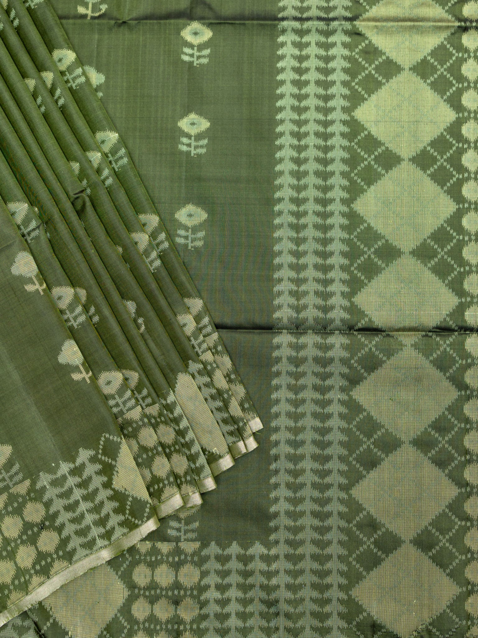 Shop the Mehendi Green Soft Silk Tripura Pattu saree. Unstitched, premium quality silk perfect for festive, traditional, and special occasions.