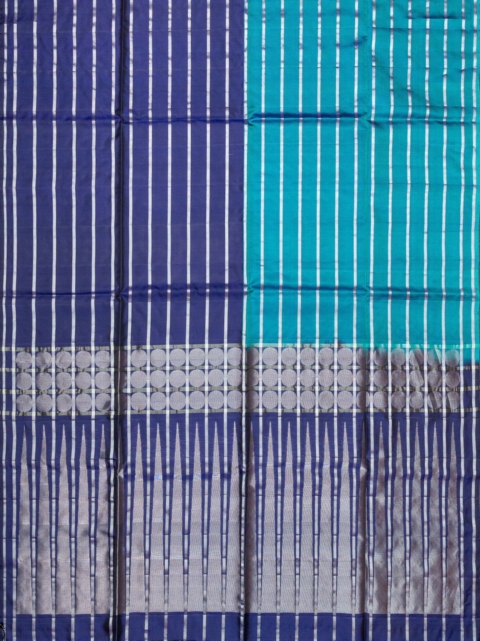Shop the Navy Blue & Peacock Green Soft Silk Tripura Pattu saree. Unstitched, premium silk perfect for festive, traditional, and special occasions.
