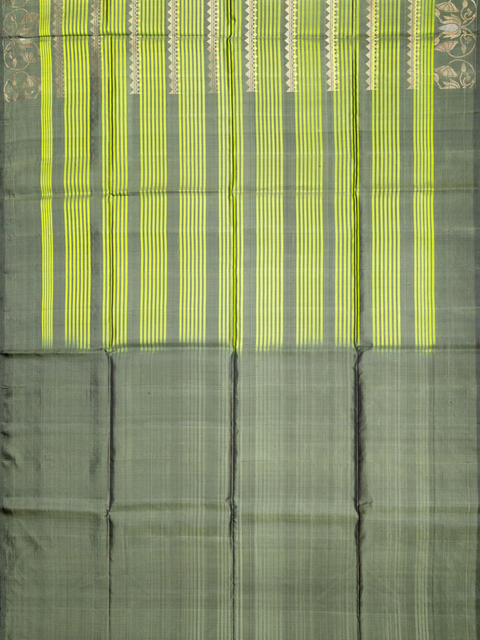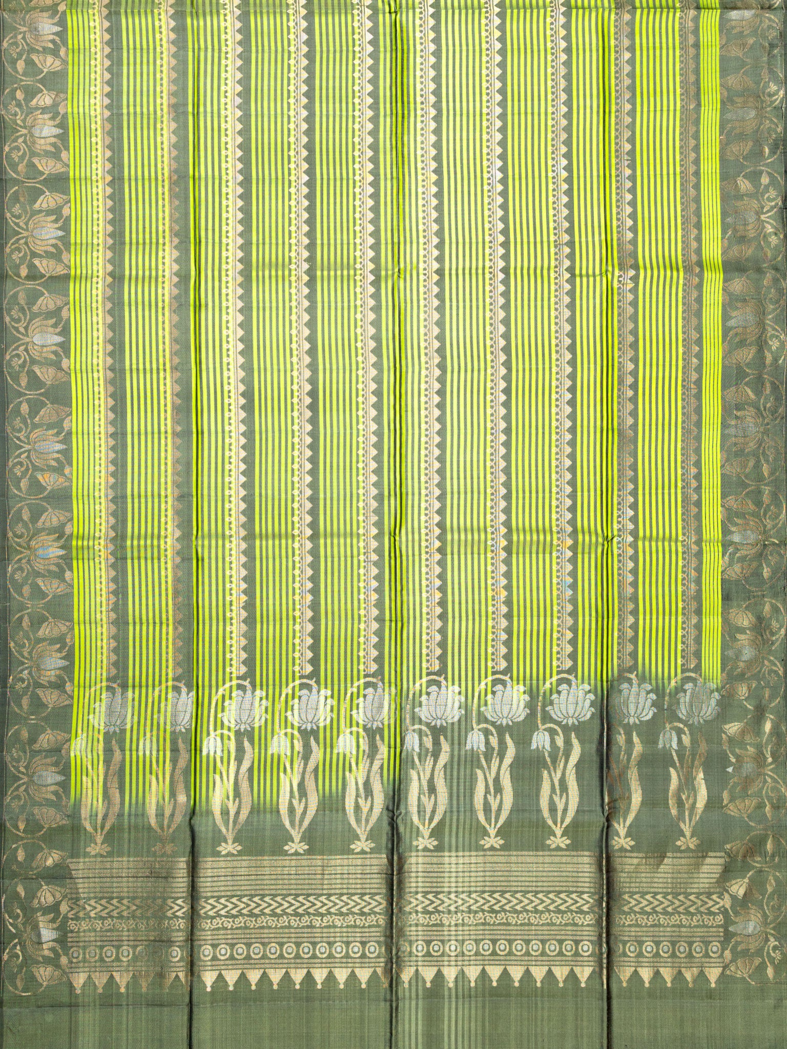 Olive Green Soft Silk Tripura Pattu saree with Self border. Unstitched, premium quality silk suitable for festive occasions, traditional events, and celebrations.