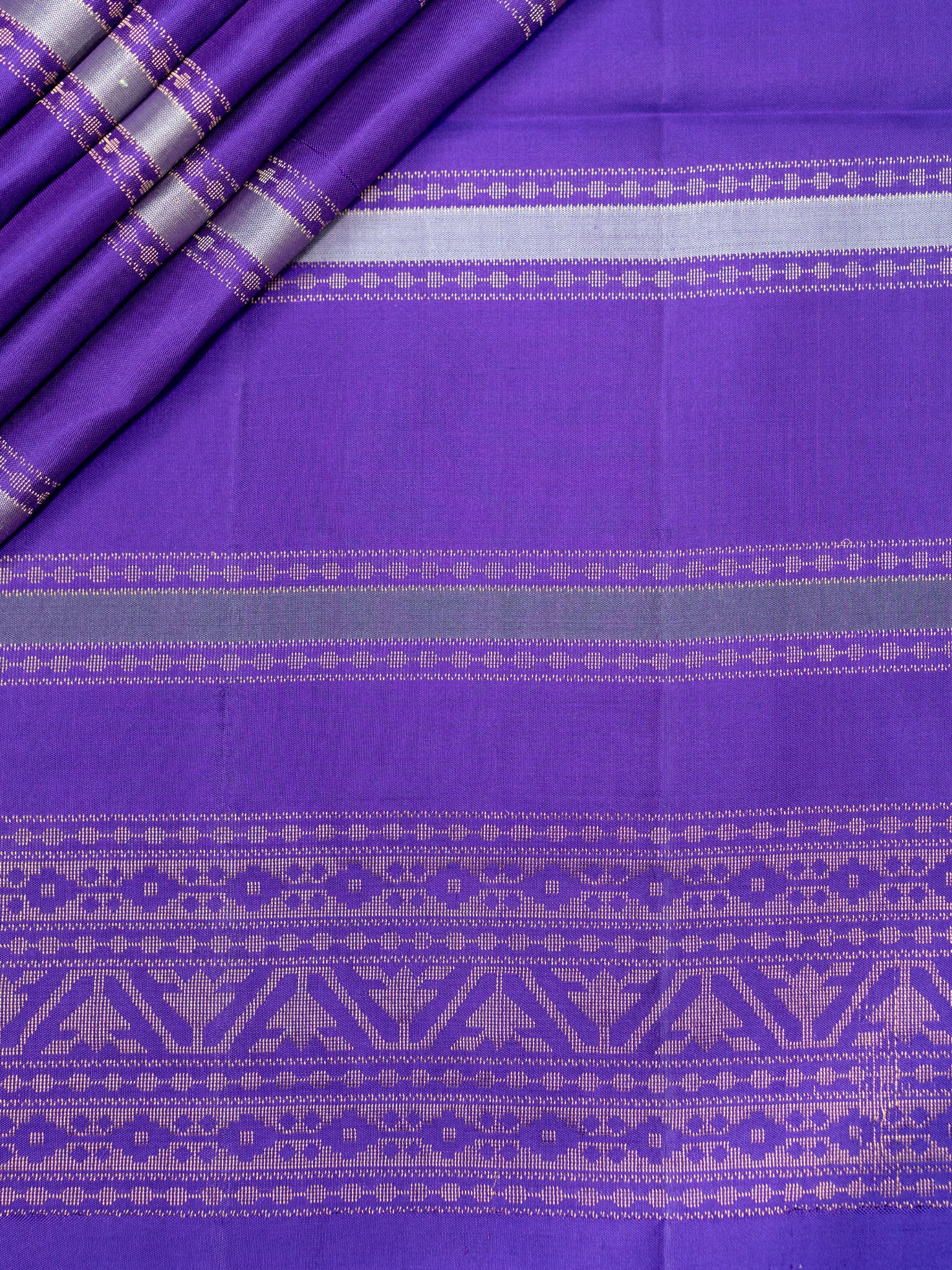 Purple Soft Silk Tripura Pattu saree with Self border. Unstitched, premium quality silk suitable for festive occasions, traditional events, and celebrations.