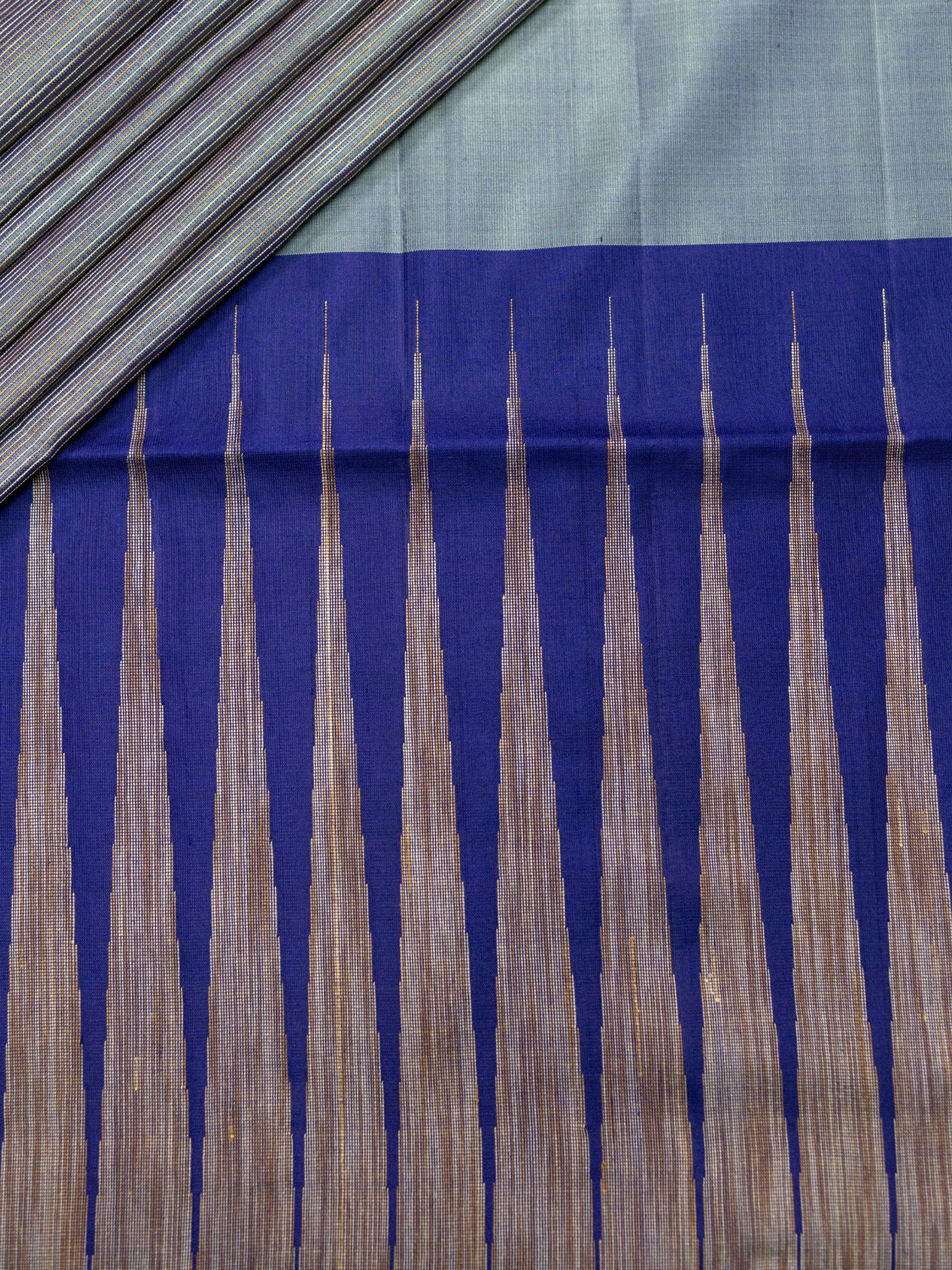 Purple Soft Silk Tripura Pattu saree with Temple border. Unstitched, premium quality silk suitable for festive occasions, traditional events, and celebrations.