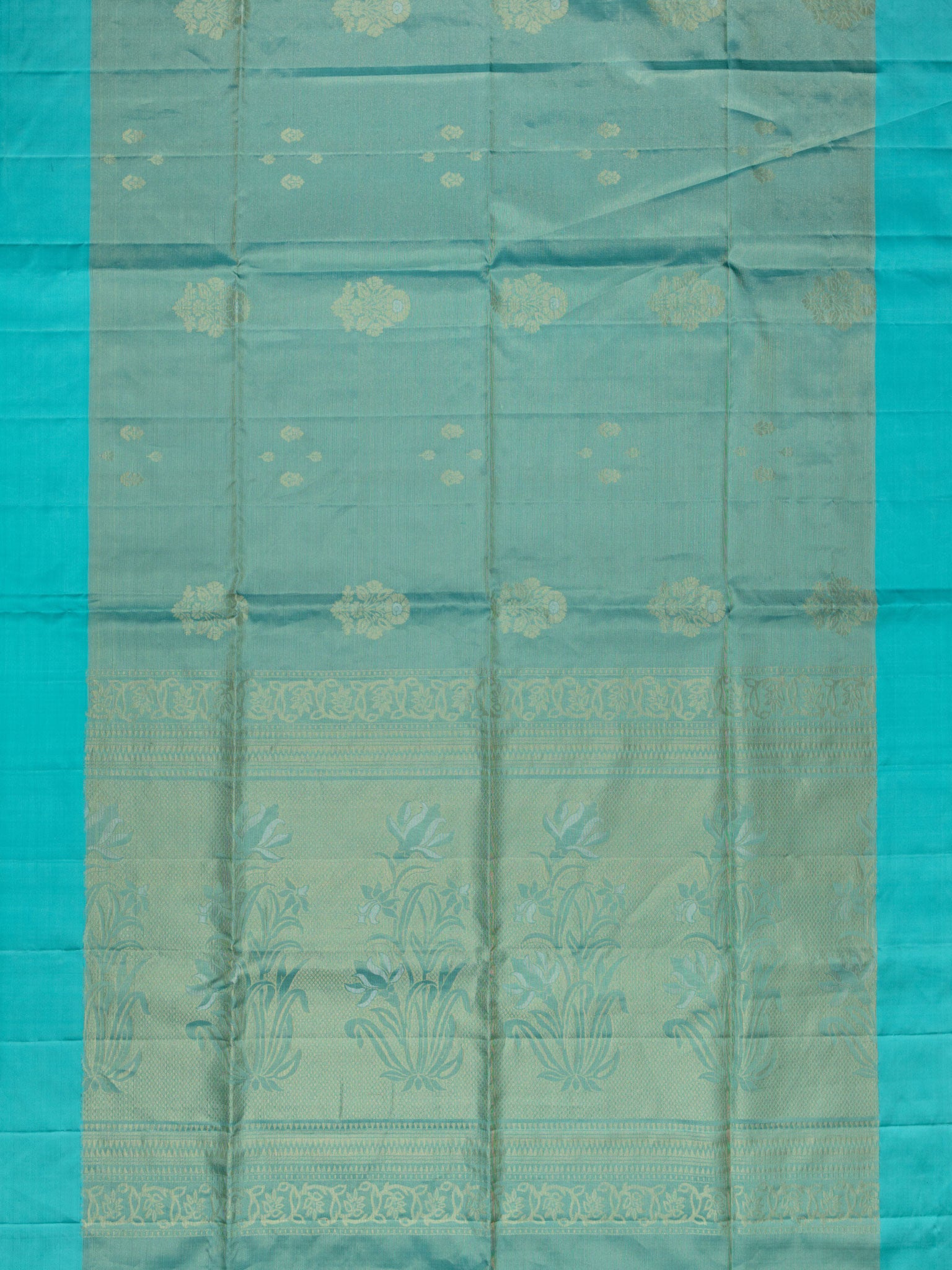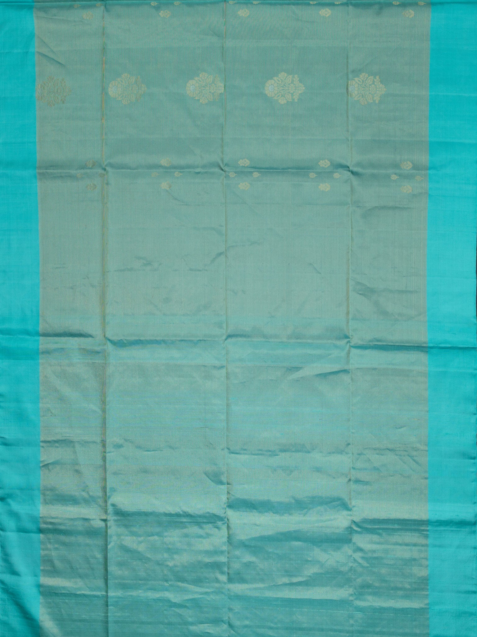 Elegant Sky Blue Soft Silk Tripura Pattu saree with Self border. Unstitched, premium quality silk perfect for festive occasions and traditional events.