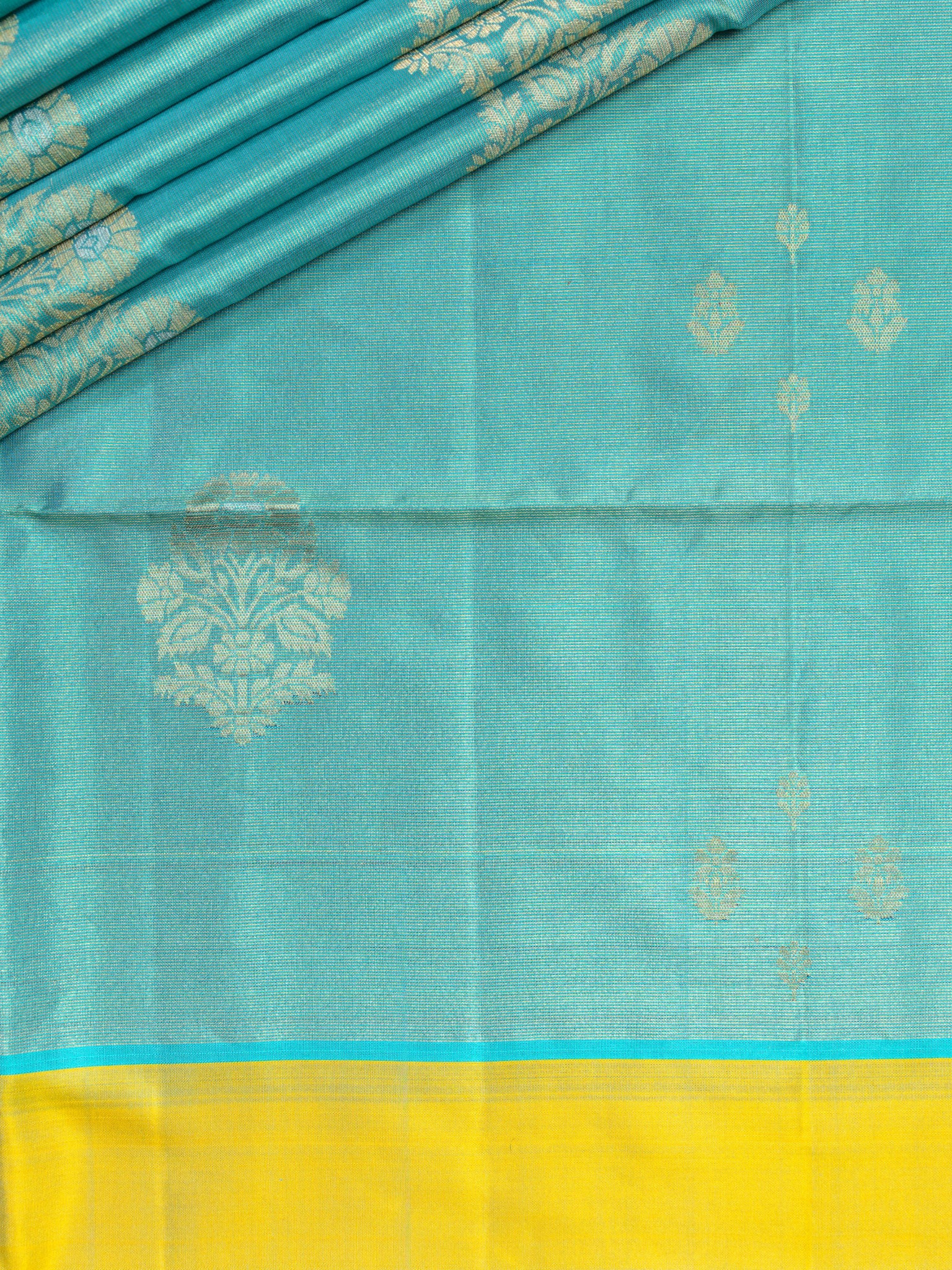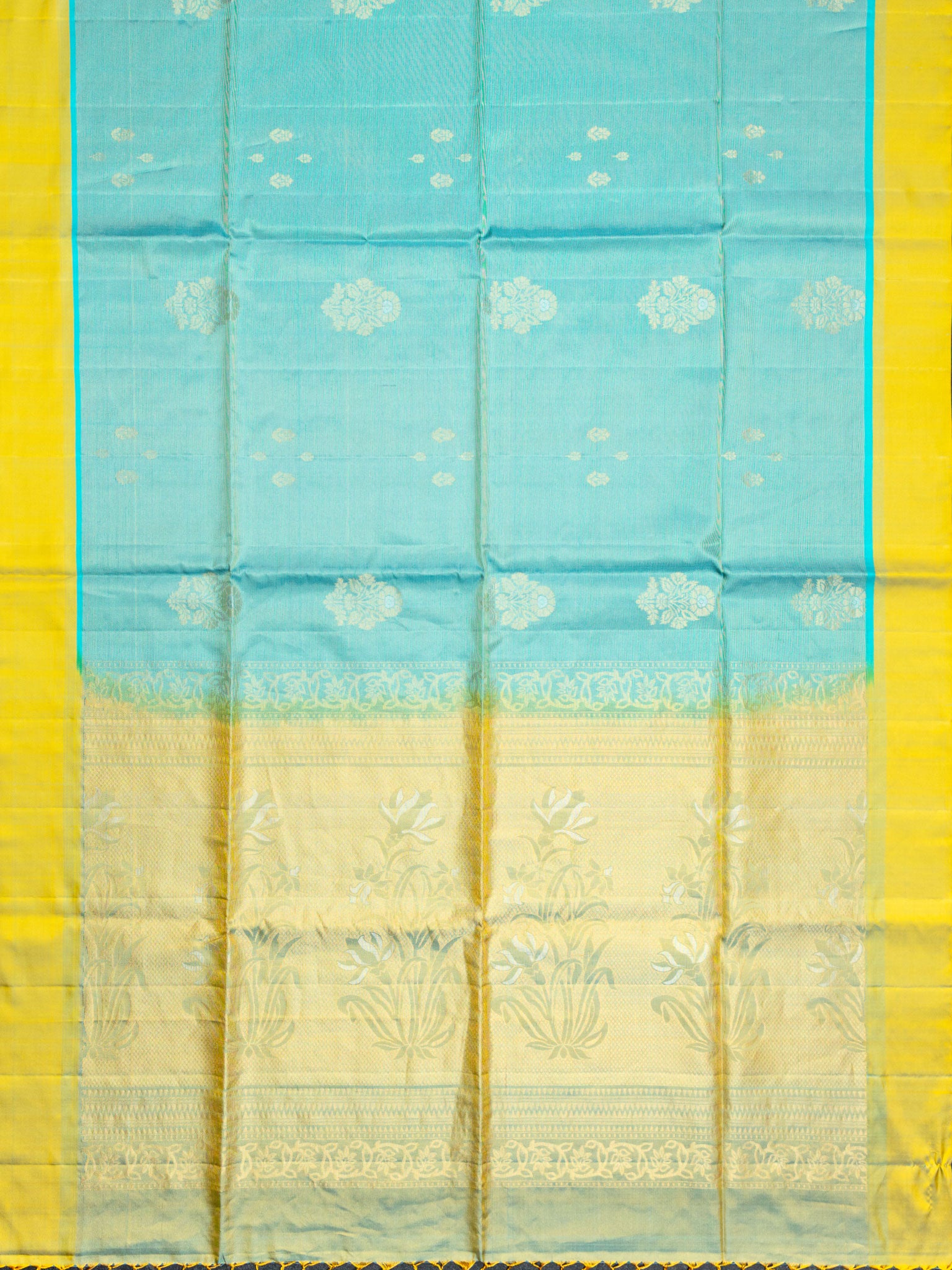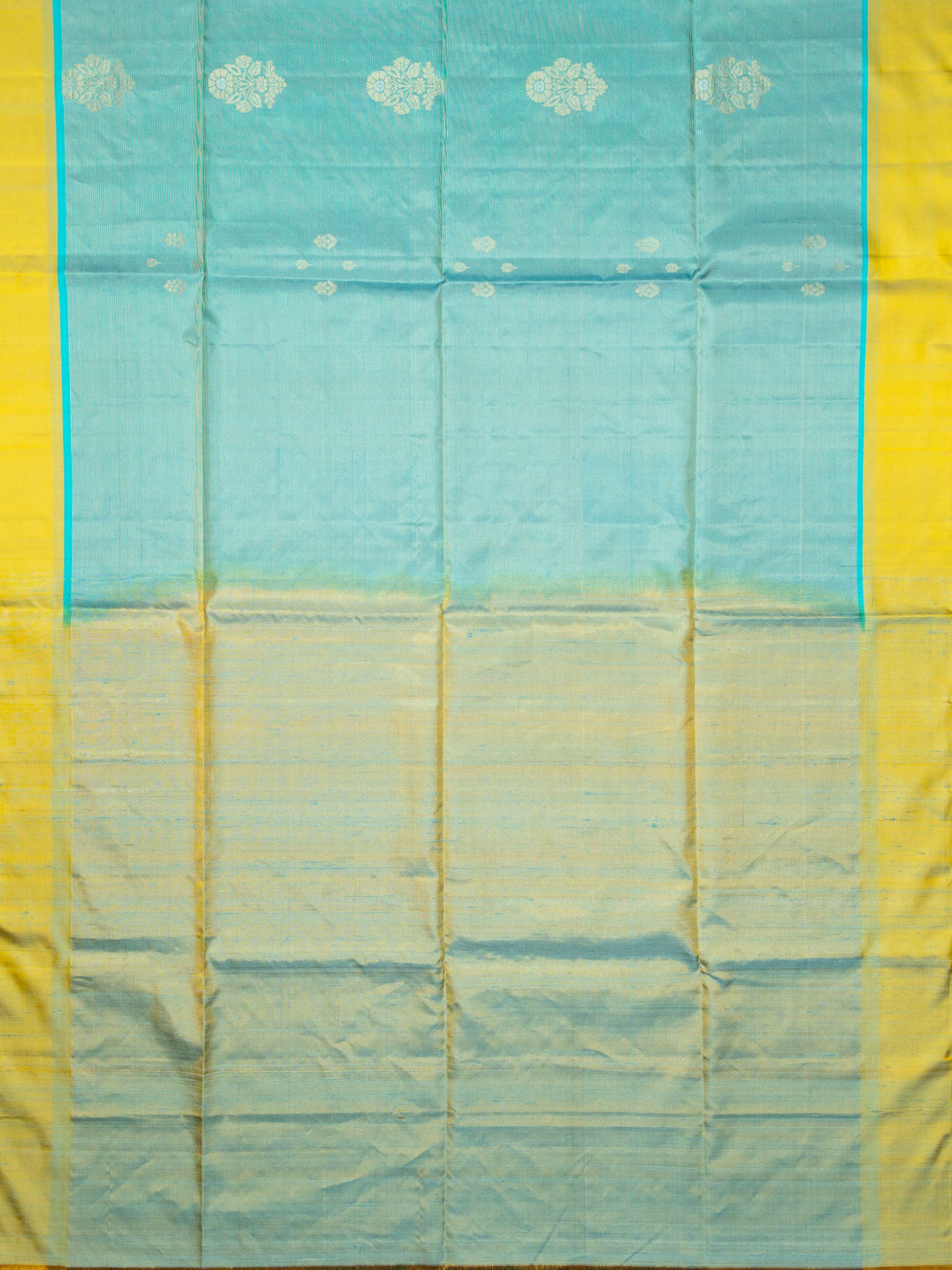 Elegant Sky Blue Soft Silk Tripura Pattu saree with double shading. Unstitched, premium silk perfect for festive occasions, traditional events, and celebrations.