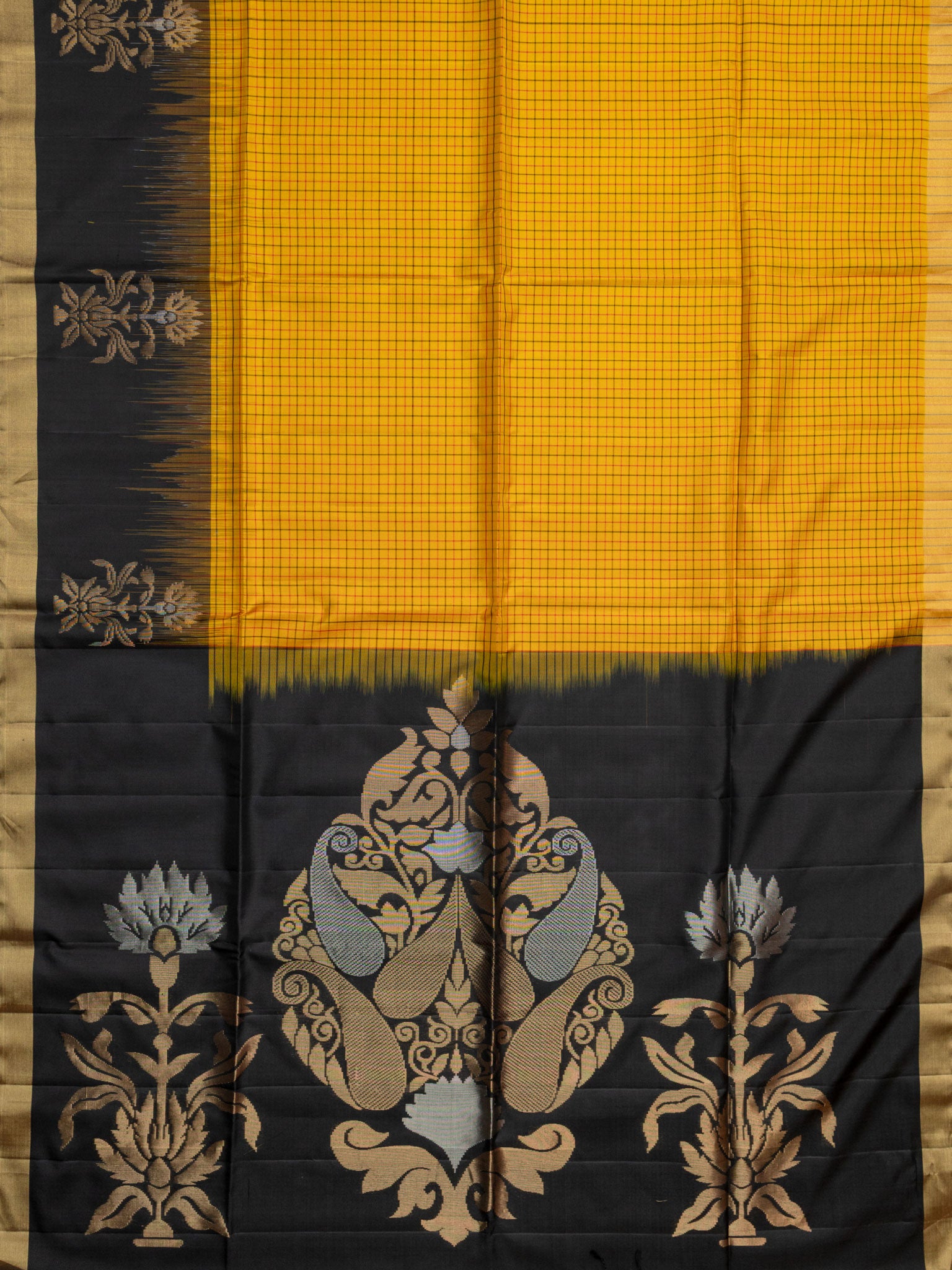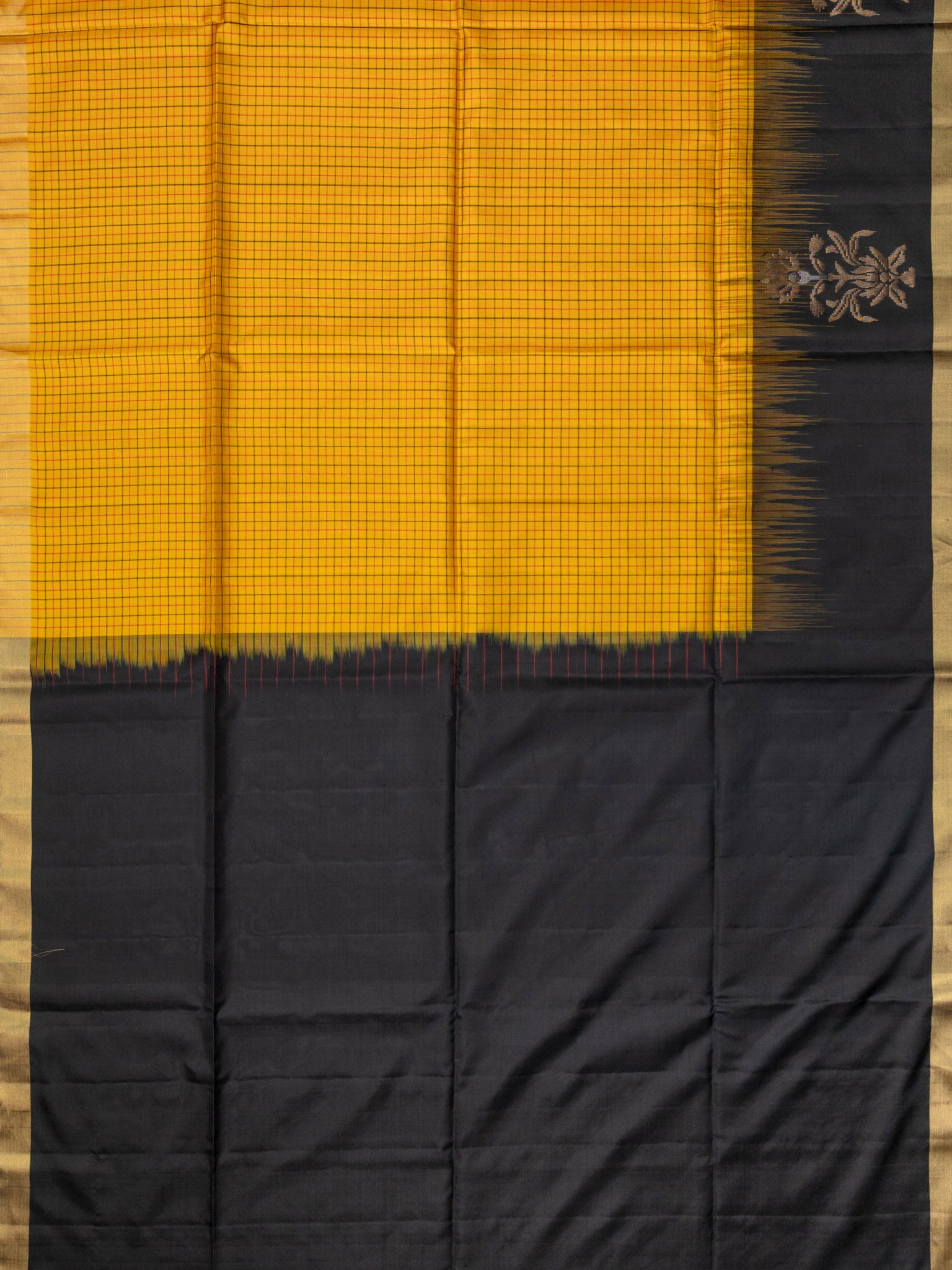 Shop the Yellow & Black Soft Silk Tripura Pattu saree. Unstitched, premium quality silk ideal for festive, traditional, and special occasions.
