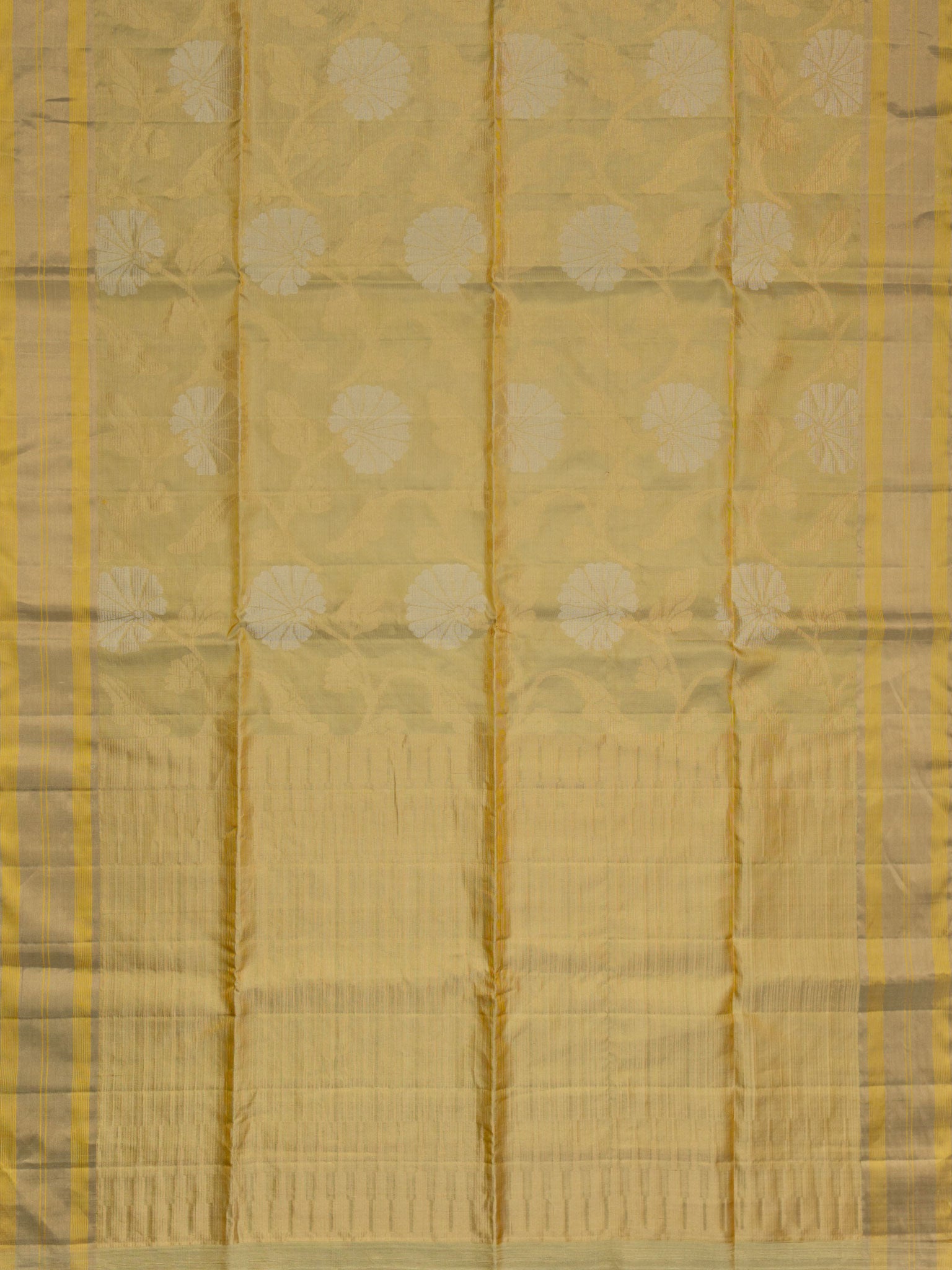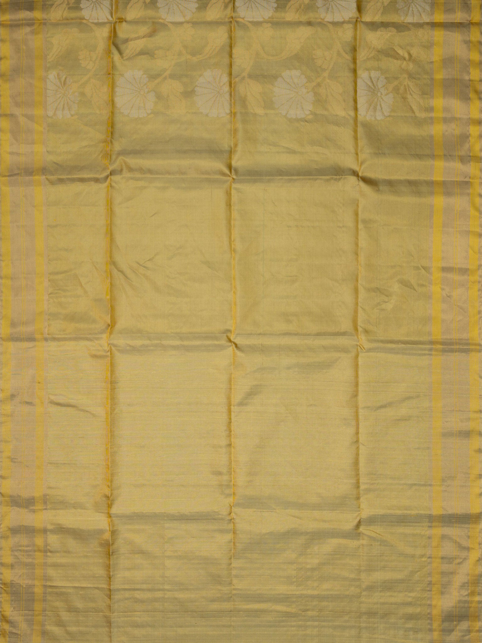 Elegant Gold Soft Silk Tripura Tissue saree with Self border. Unstitched, premium quality silk perfect for festive occasions, traditional events, and celebrations.
