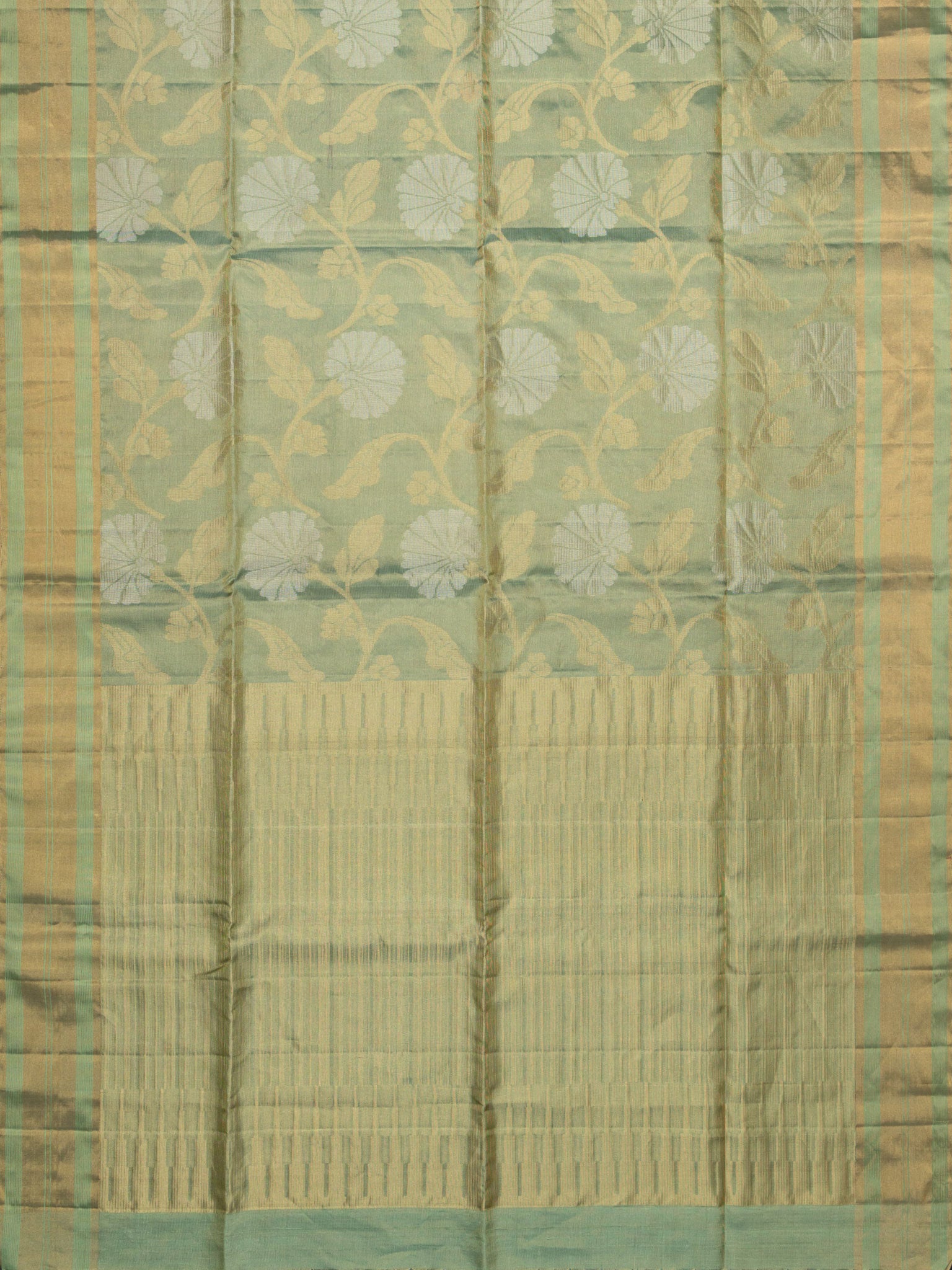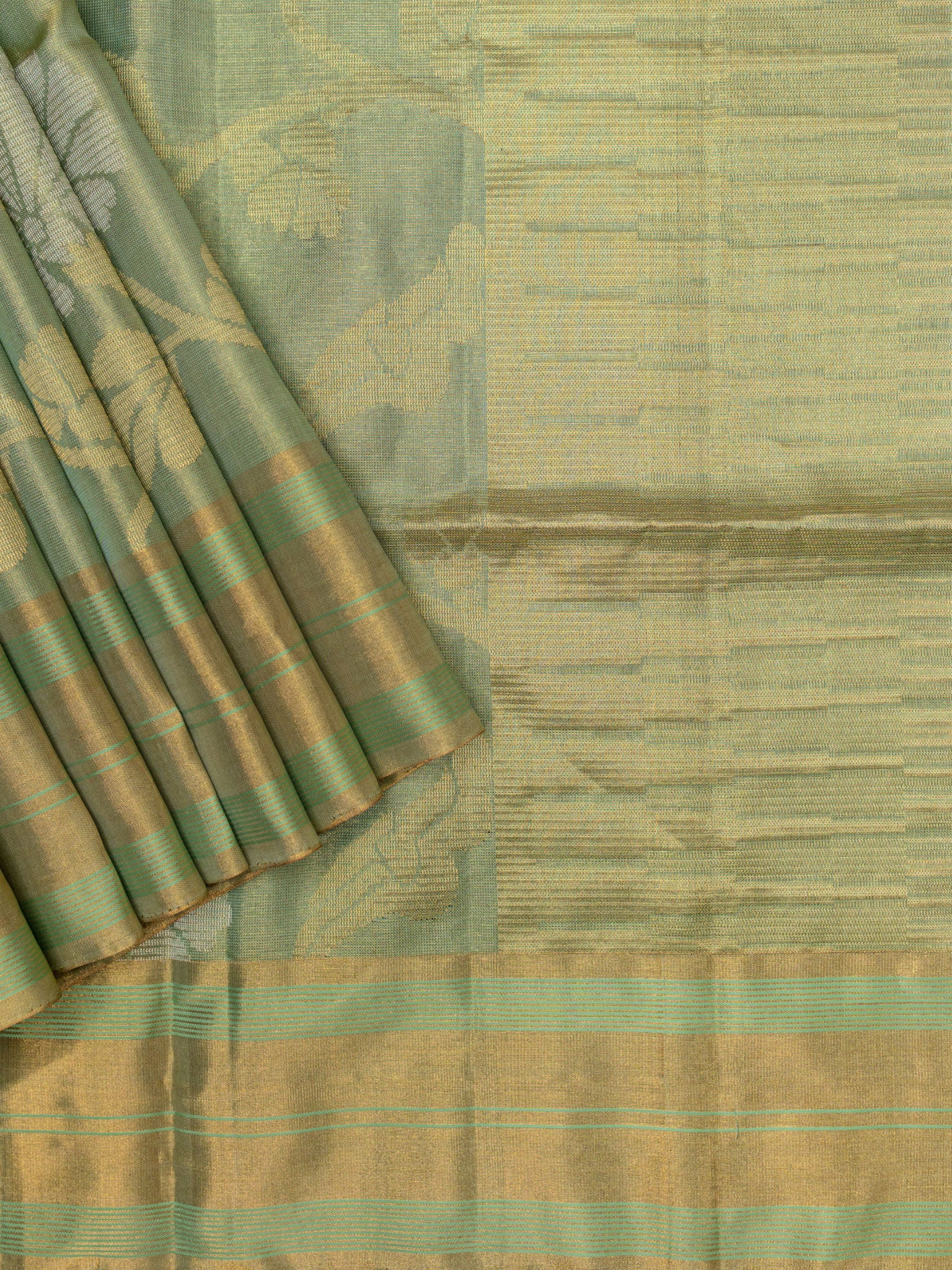 Elegant Sea Green Soft Silk Tripura Tissue saree with Self border. Unstitched, premium quality silk perfect for festive occasions and traditional events.
