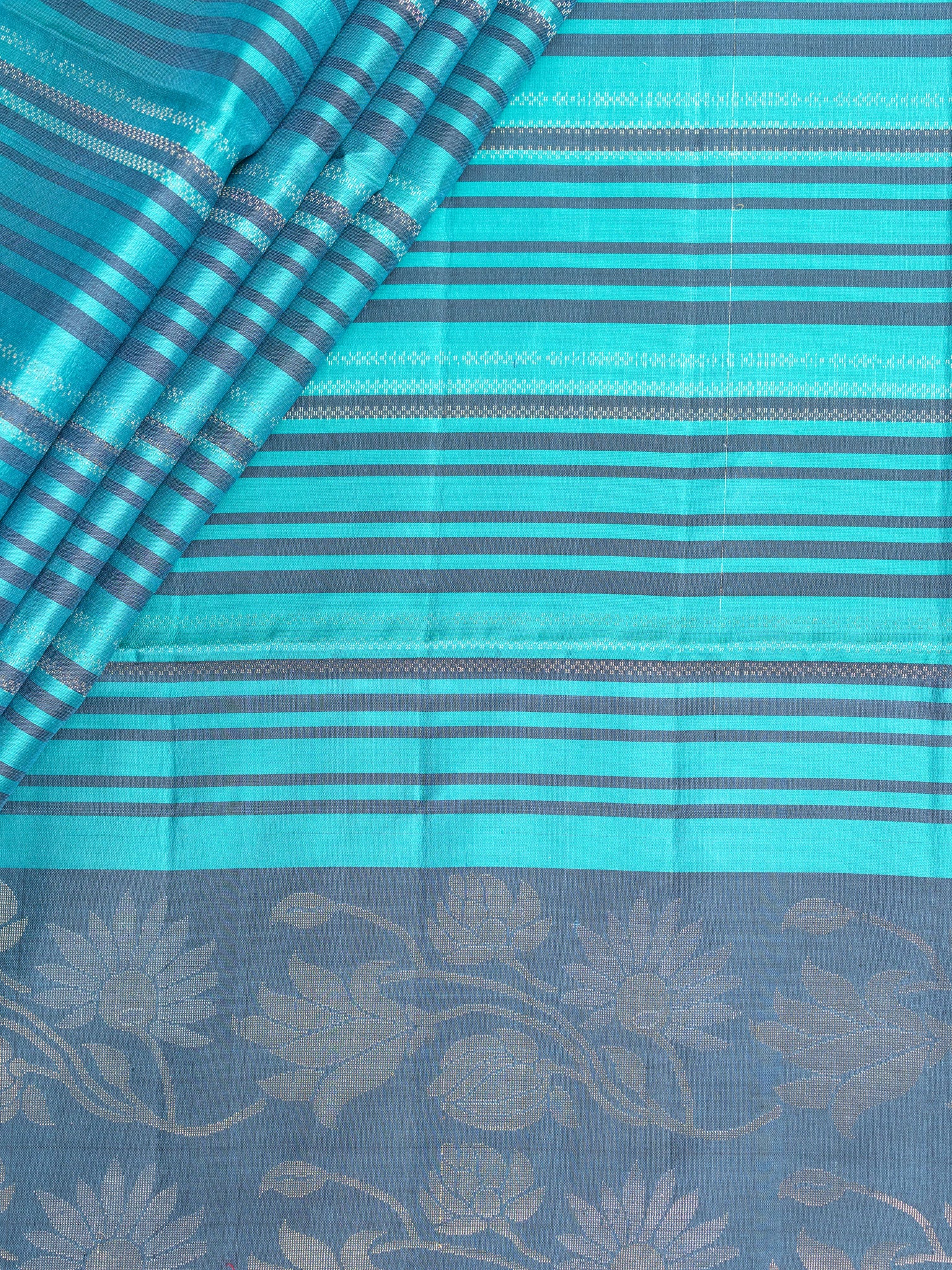 Graceful Teal Blue Tripura Pattu Soft Silk Saree with matching self-blouse fabric. A refined choice for weddings, festive occasions, and cultural traditions.
