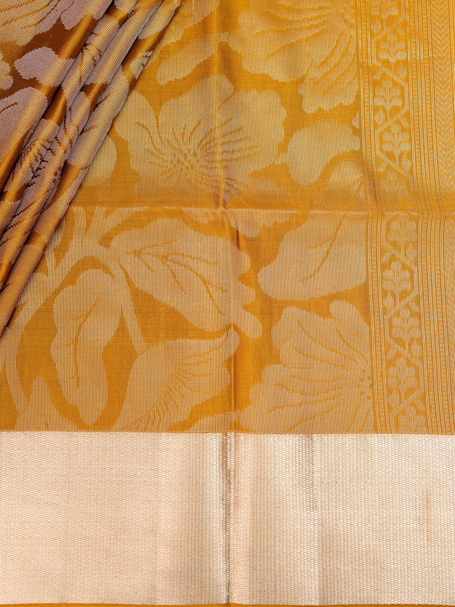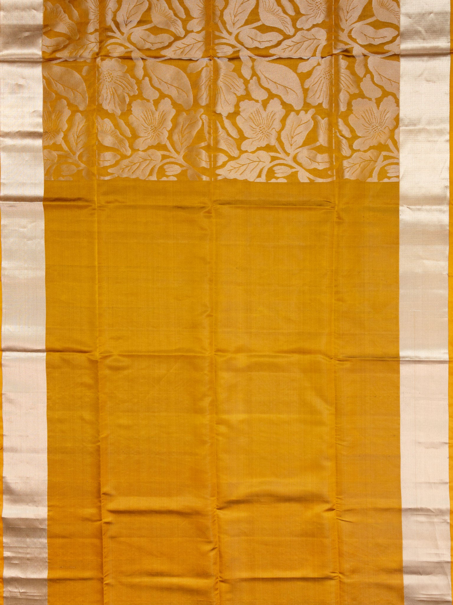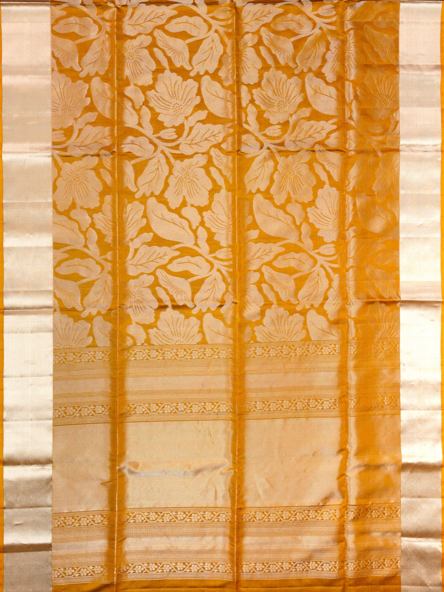 Vibrant Turmeric Yellow Tripura Pattu Soft Silk Saree with matching self-blouse fabric. A festive-perfect drape for weddings, haldi ceremonies, and traditions.