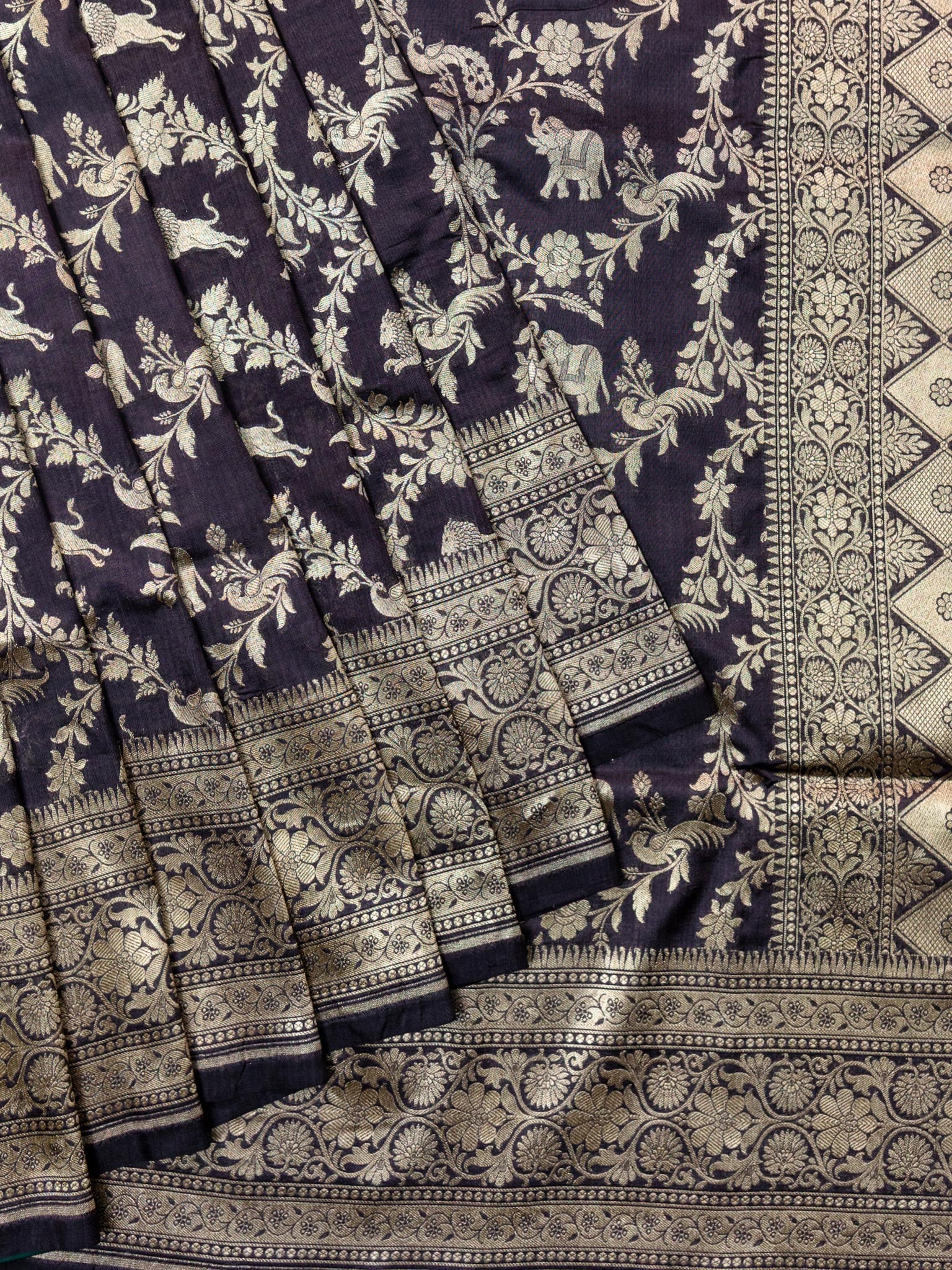 Experience the timeless elegance of the Weaves Banarasi Banarasi Jaal in Dull Brown. Crafted with intricate jaal patterns, this fabric blends traditional artistry with subtle sophistication. Perfect for special occasions, it offers a rich texture and graceful drape that enhances your style effortlessly. Elevate your wardrobe with this classic piece that celebrates heritage and refined beauty.