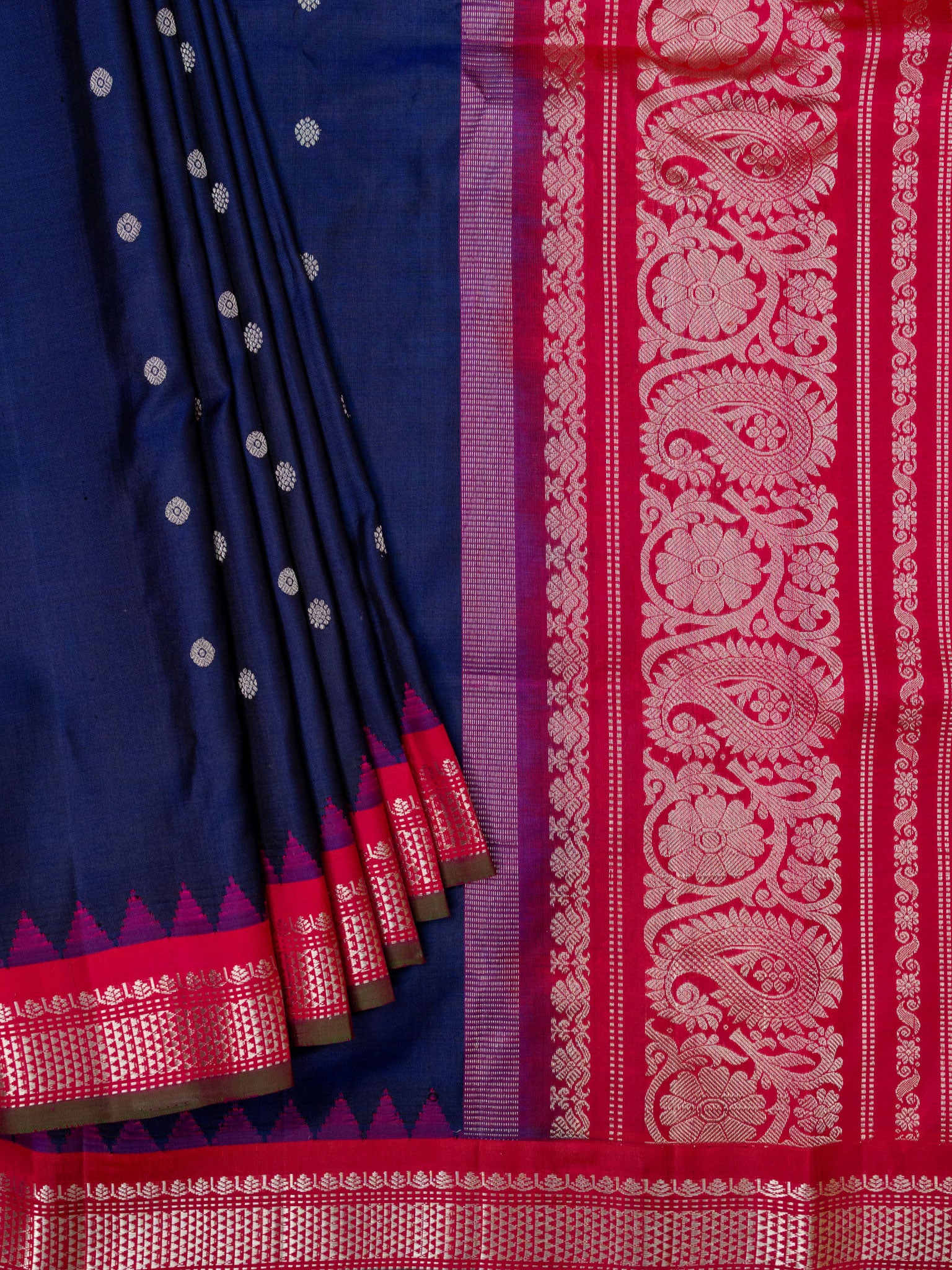 Gadwal Pattu With Contrast Border With Temple Border With Butta
