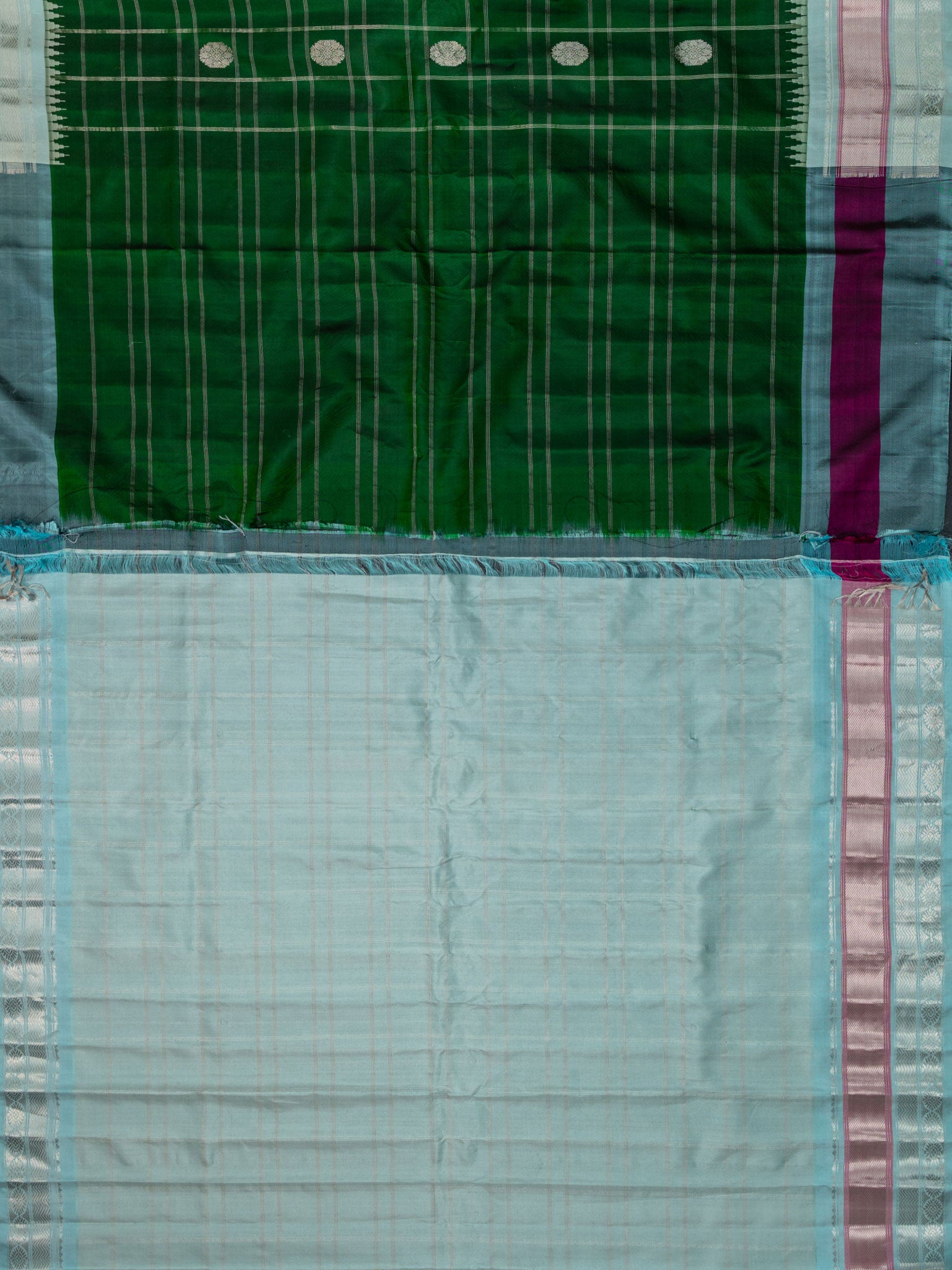 Gadwal Pattu With contrast Border With Temple Border With Butta Checks