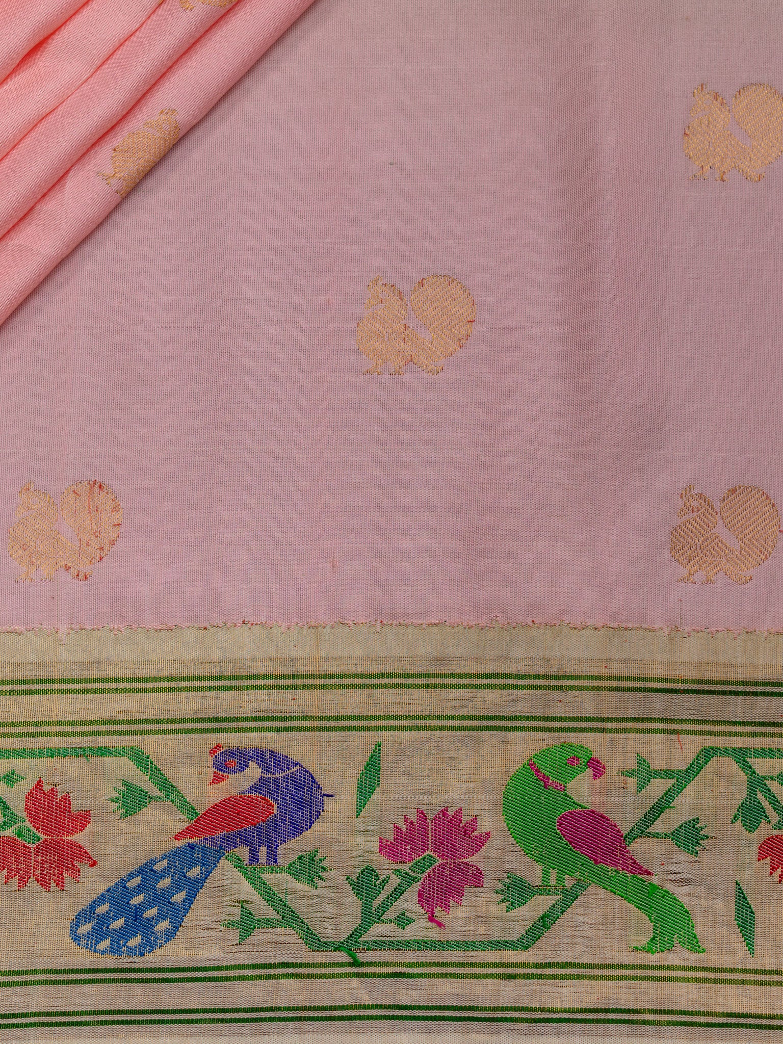 Elevate your traditional wardrobe with this exquisite Weaves Paithani Saree featuring a striking contrast border. Crafted with meticulous attention to detail, it blends timeless elegance with vibrant hues, making it perfect for festive occasions and celebrations. The rich texture and distinctive design highlight your grace, ensuring you stand out with every wear. Experience the charm of authentic craftsmanship combined with contemporary style in this stunning saree.
